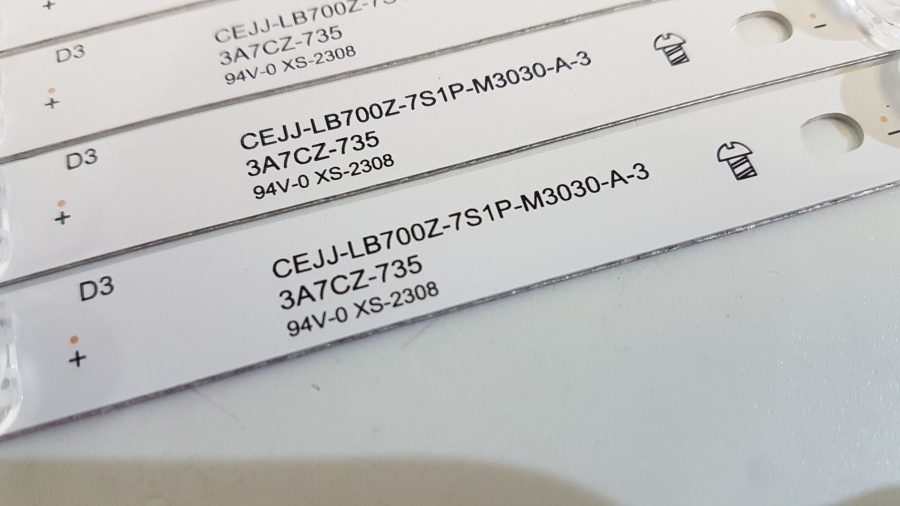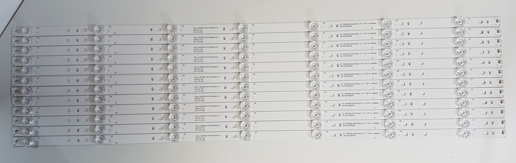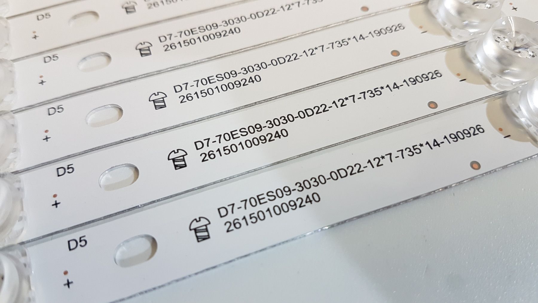 neues 12 teiliges Backlight Set für 70 Zoll Philips LCD TV LED Backlight Strip Leiste für LCD TV Typ: D7-70ES09-3030-0D22-12*7-735*14-190926 baugleich mit LB-GM3030-GJ0D227012X7PB09 baugleich mit: CEJJ-LB700Z-7S1P-M3030-A-3 mit 7 LEDs Maße: 735x14mm Basismaterial: Aluminium passend bei folgenden Ger... Mehr