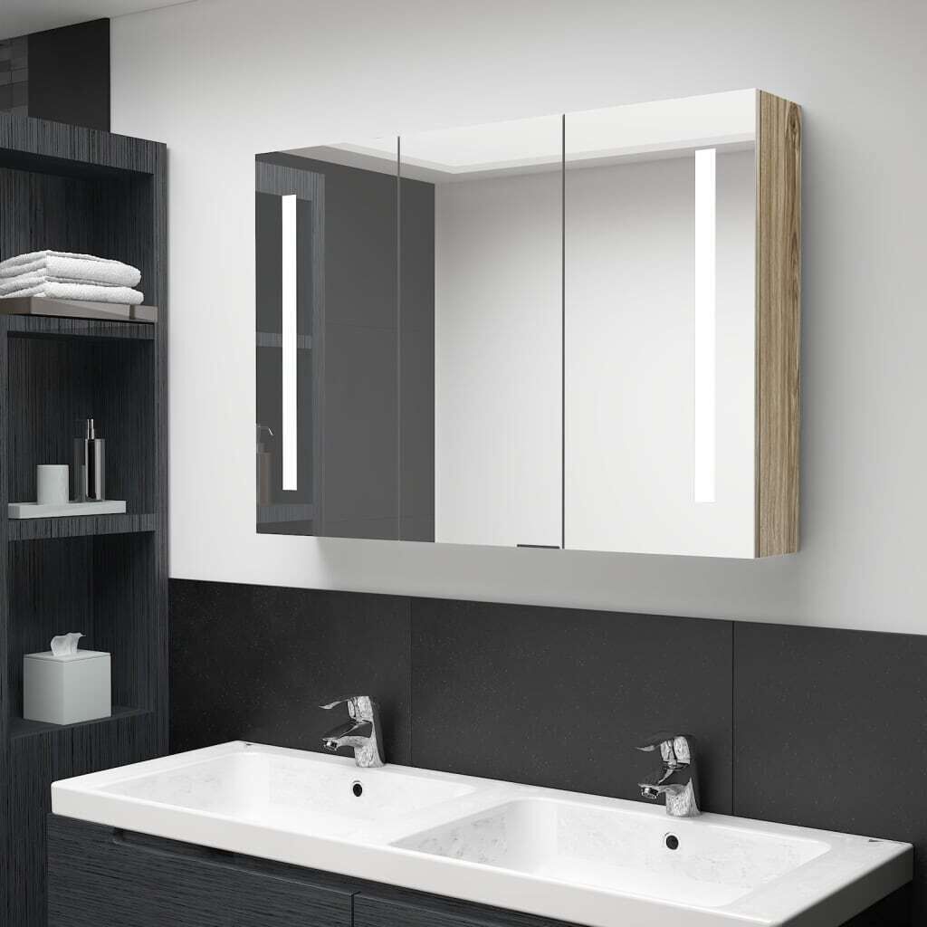 VIDAXL LED-Bad-Spiegelschrank 89x14x62 cm Eichen-Optik