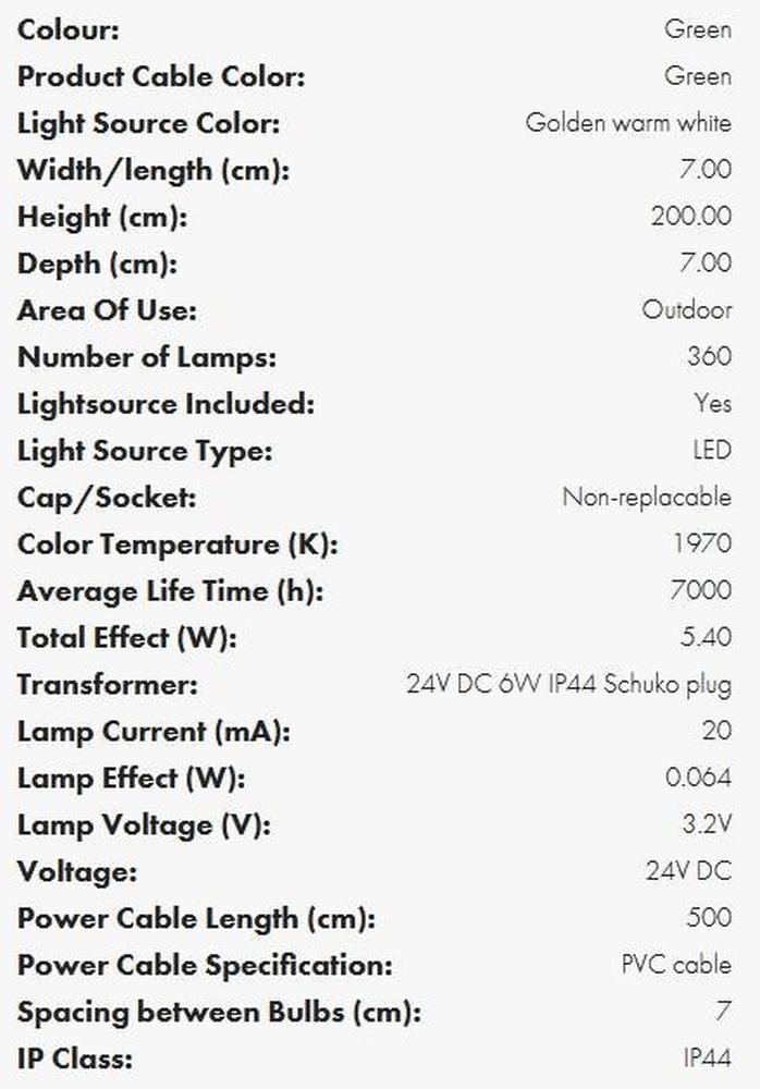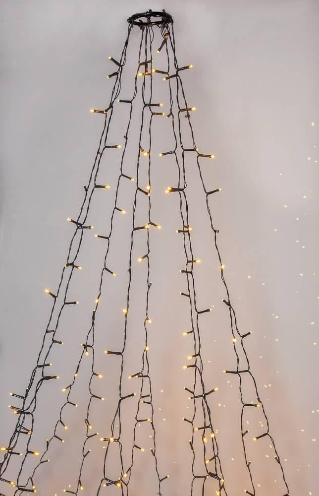 LED Baumvorhang 360er golden warmweiß 200cm hoch Kabel grün IP44 außen 594-13-1