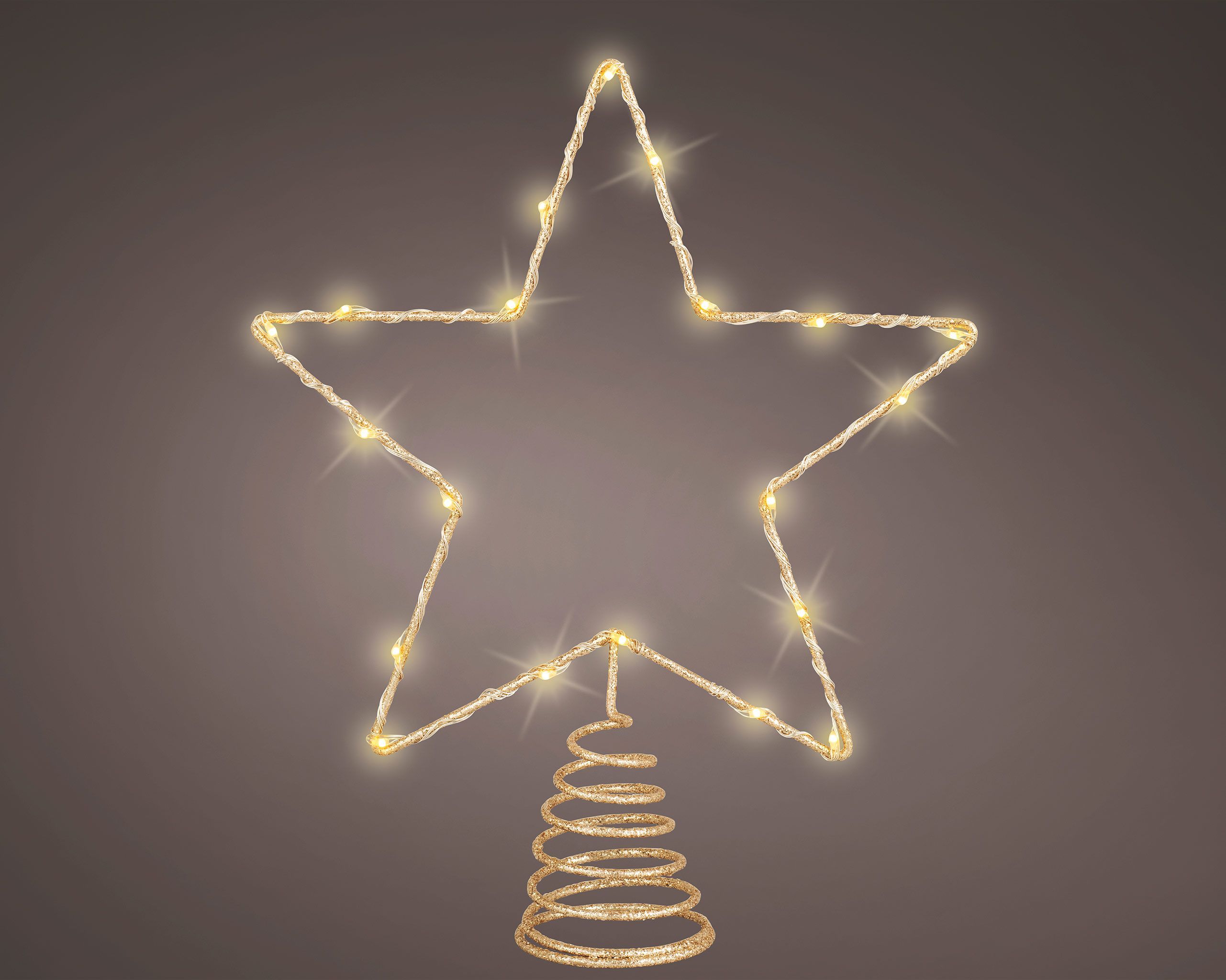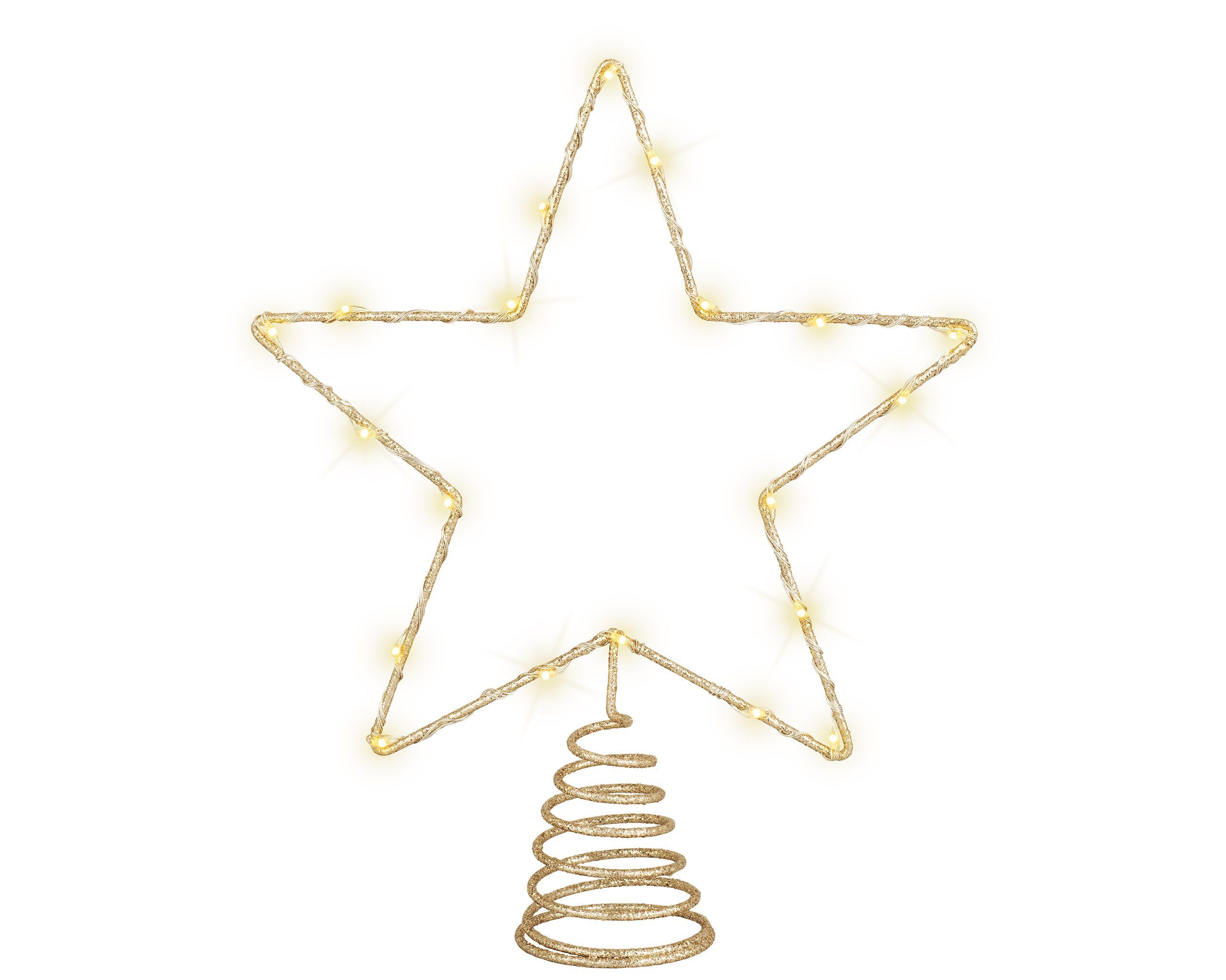 LED Christbaumspitze Stern mit Timer 27cm Metall Gold / Klassisch Warm