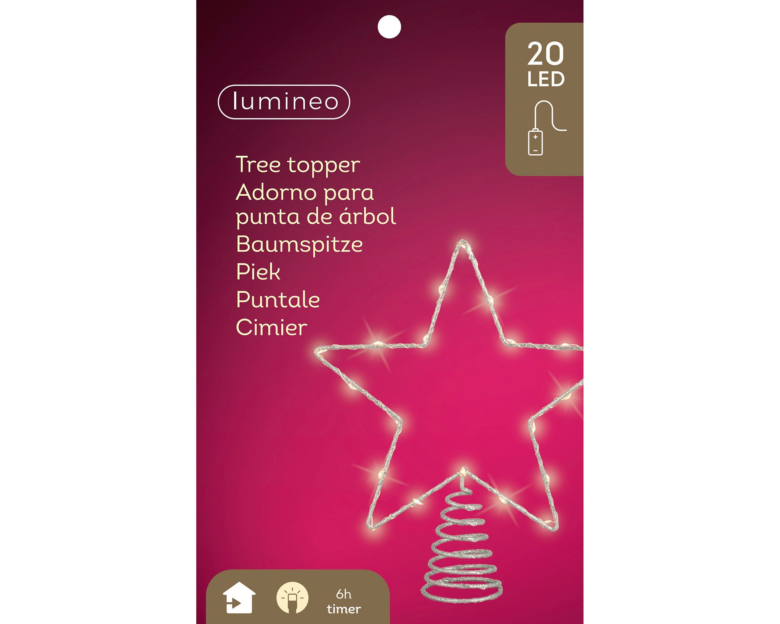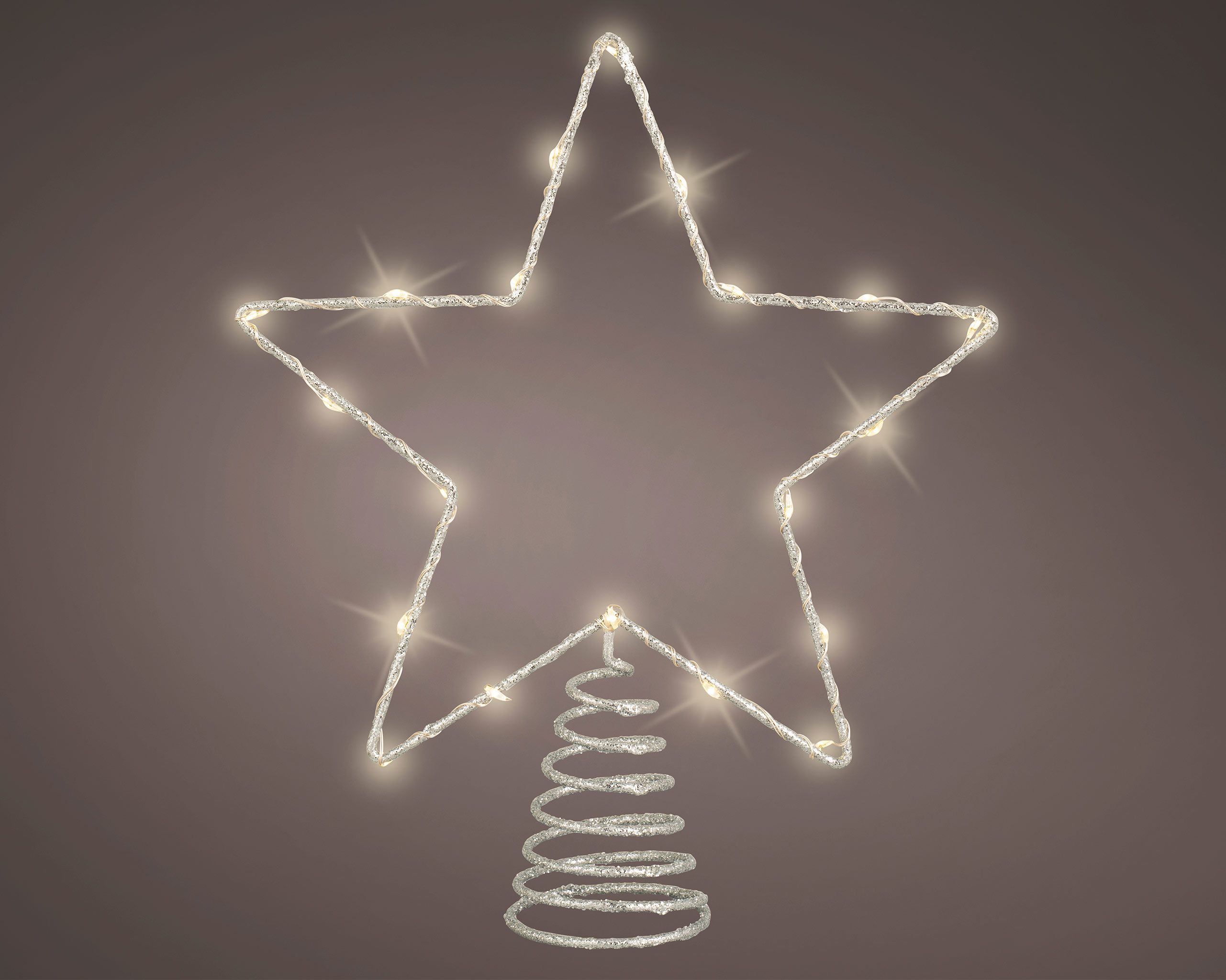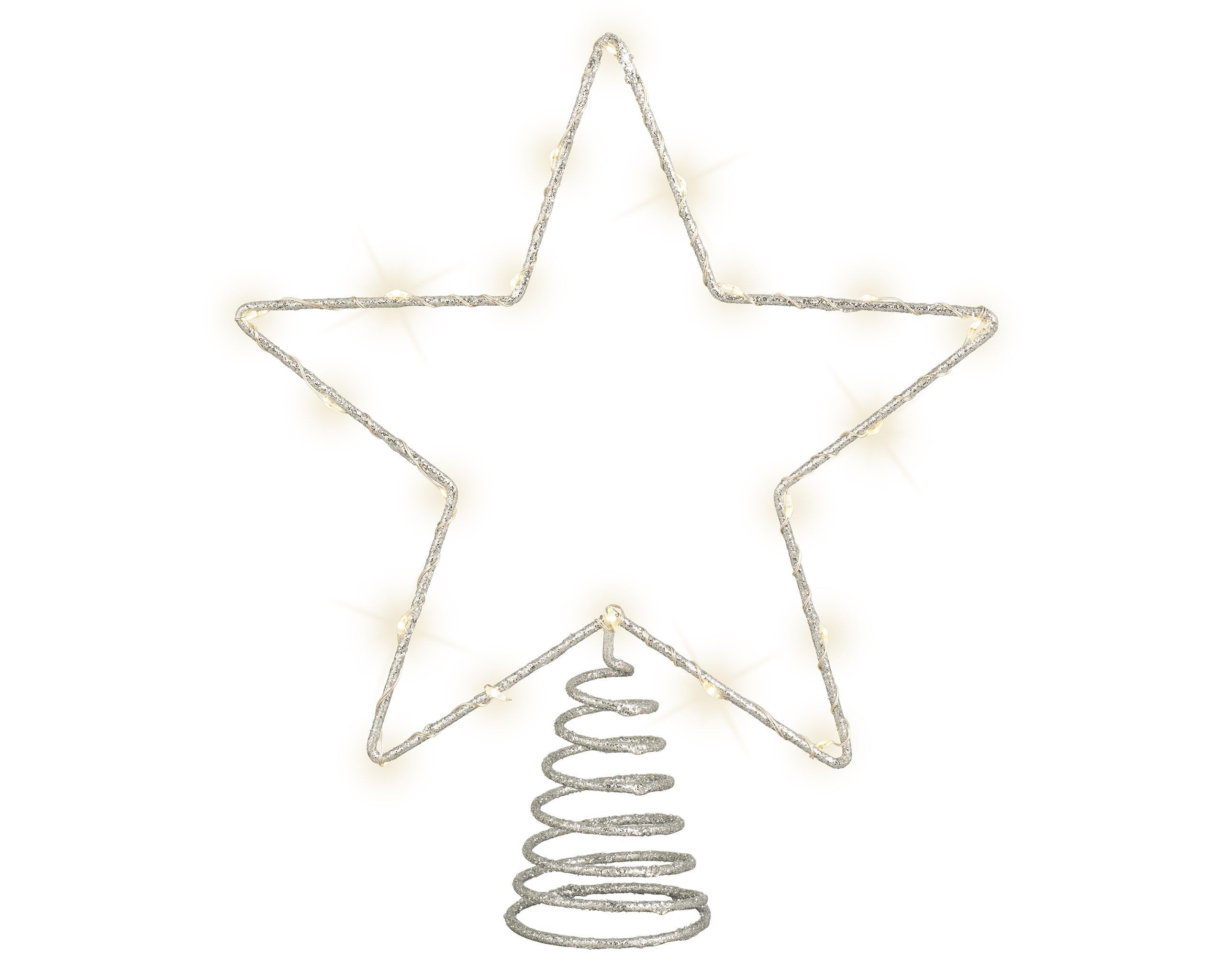 LED Christbaumspitze Stern mit Timer 27cm Metall Silber / Warmweiß
