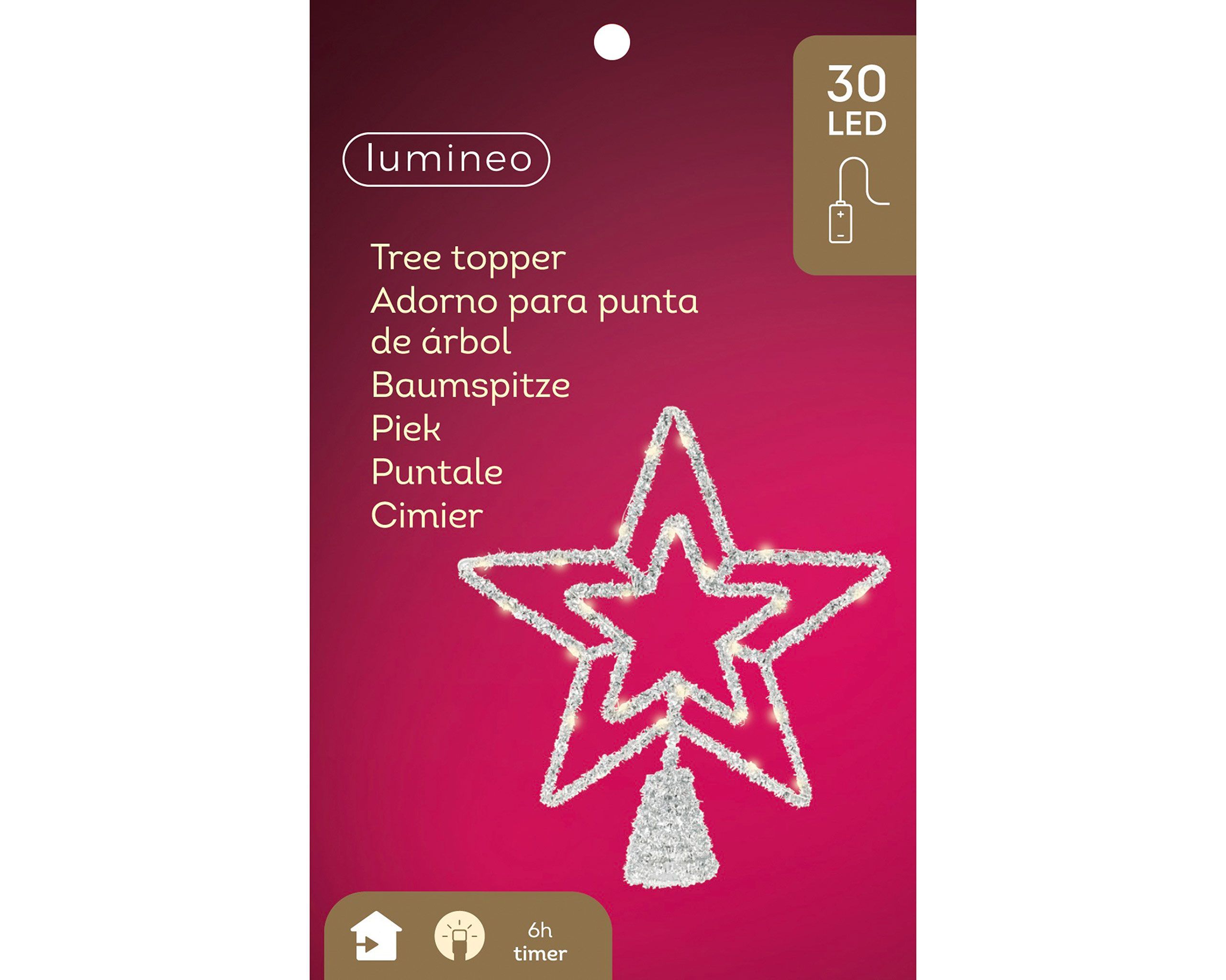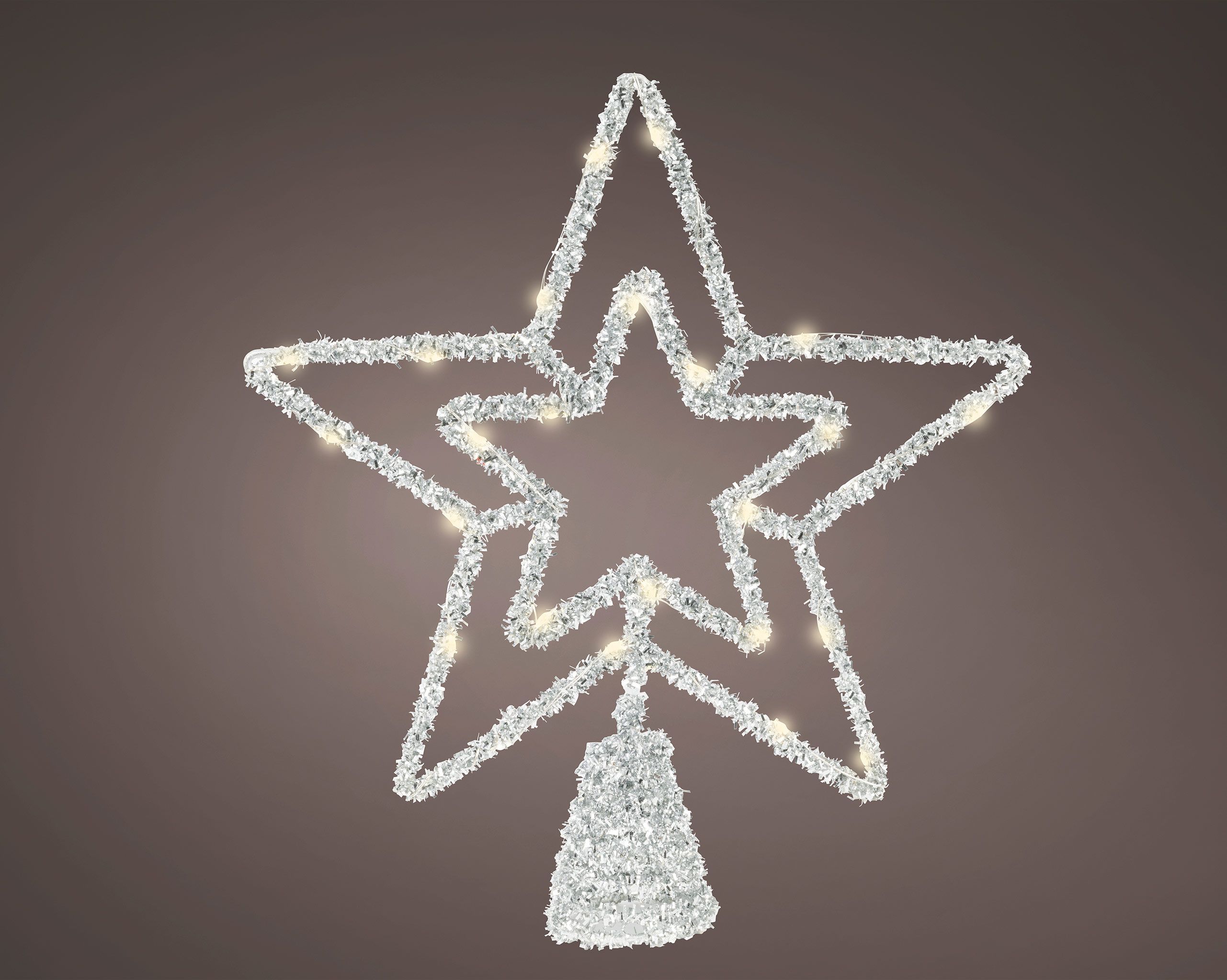 LED Christbaumspitze Stern mit Timer 28cm Metall Silber / Warmweiß