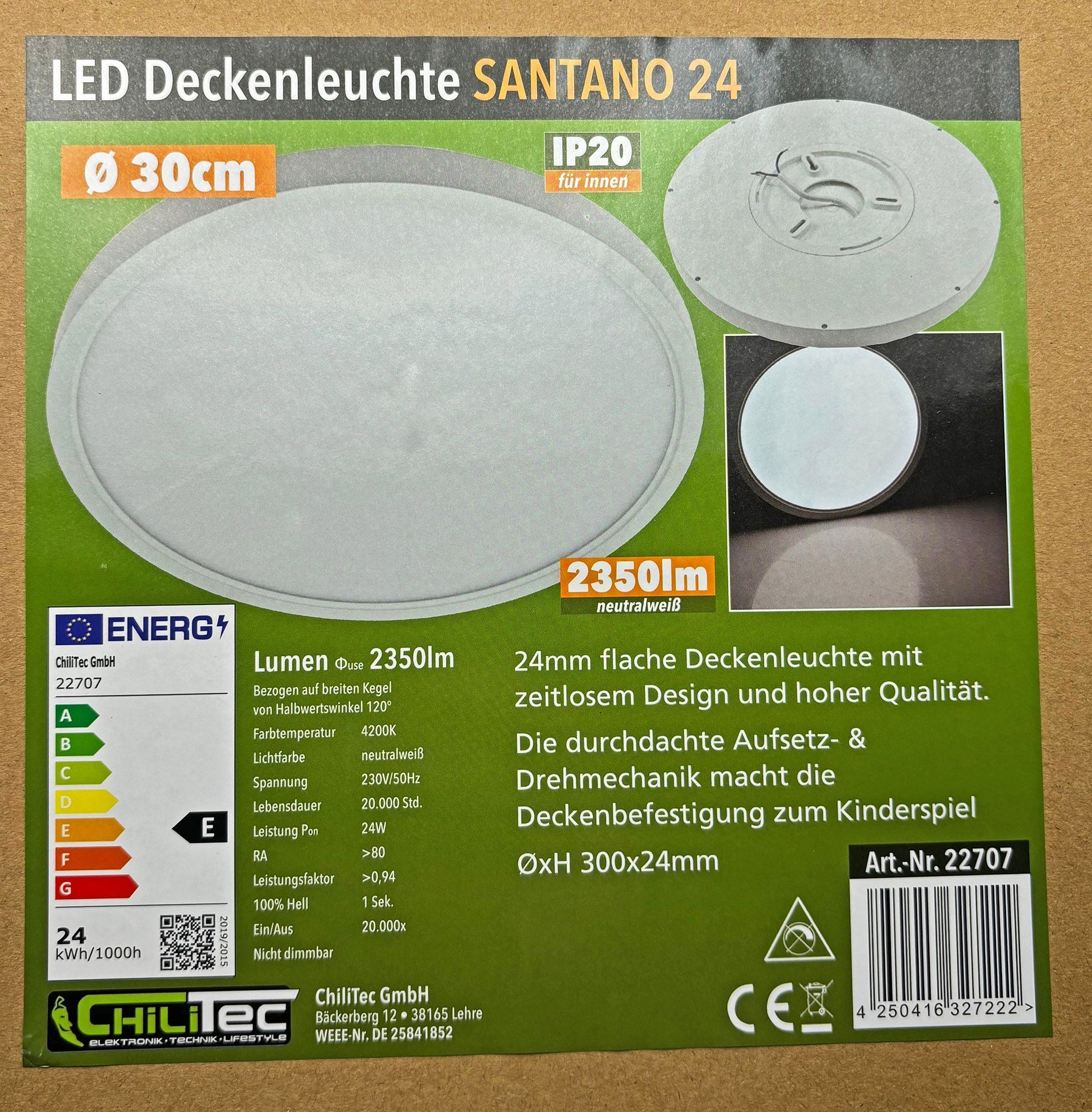 ChiliTec LED Deckenleuchte "Santano 24n" Ø 30cm, 24W, 2350lm, 4200K neutralweiß