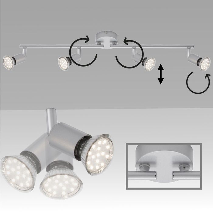 Briloner LED Deckenstrahler 4flg silber inkl. GU10 3W schwenkbar PICCO