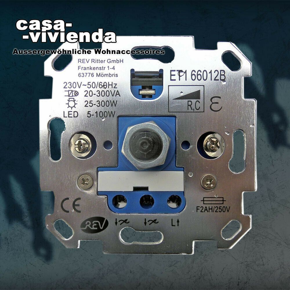 casavivienda Außergewöhnliche Wohnaccessoires ... ...anders als alle Anderen... LED-Dimmer, 5-100W * 25-300W **, Phasenabschnitt , (Dimmer- Lastkennzeichnung R,C ) - Dimmer mit Druck- und Ausschaltfunktion (Wechselschalter) - passend für alle VIKO®-Schalterprogramme) Verwendung: p assend für alle VI