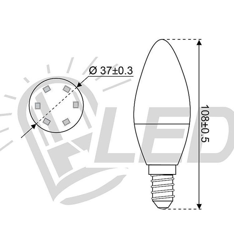 LED E14 KERZE 3,7Watt 370lm warm-weiß (AC/ DC) Notlicht Gleich- und Wechselspannung