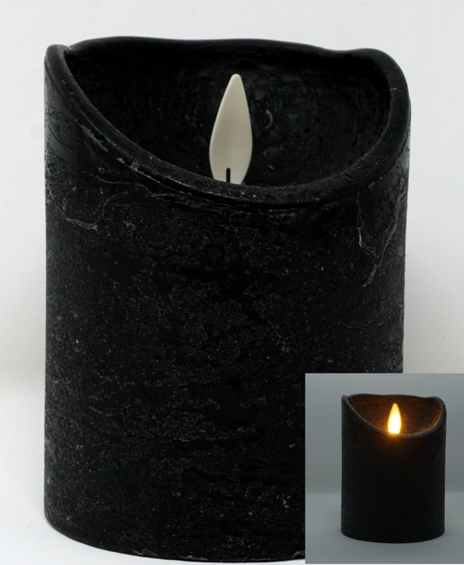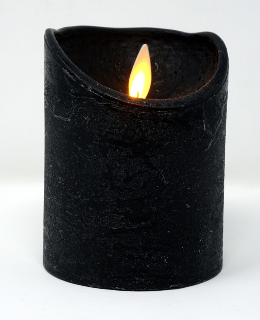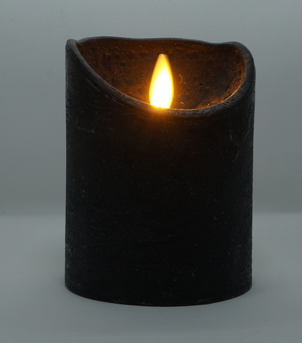 LED echtwachs Stumpenkerze 10 cm Schwarz Timer bewegliche Flamme Kerze Teelicht