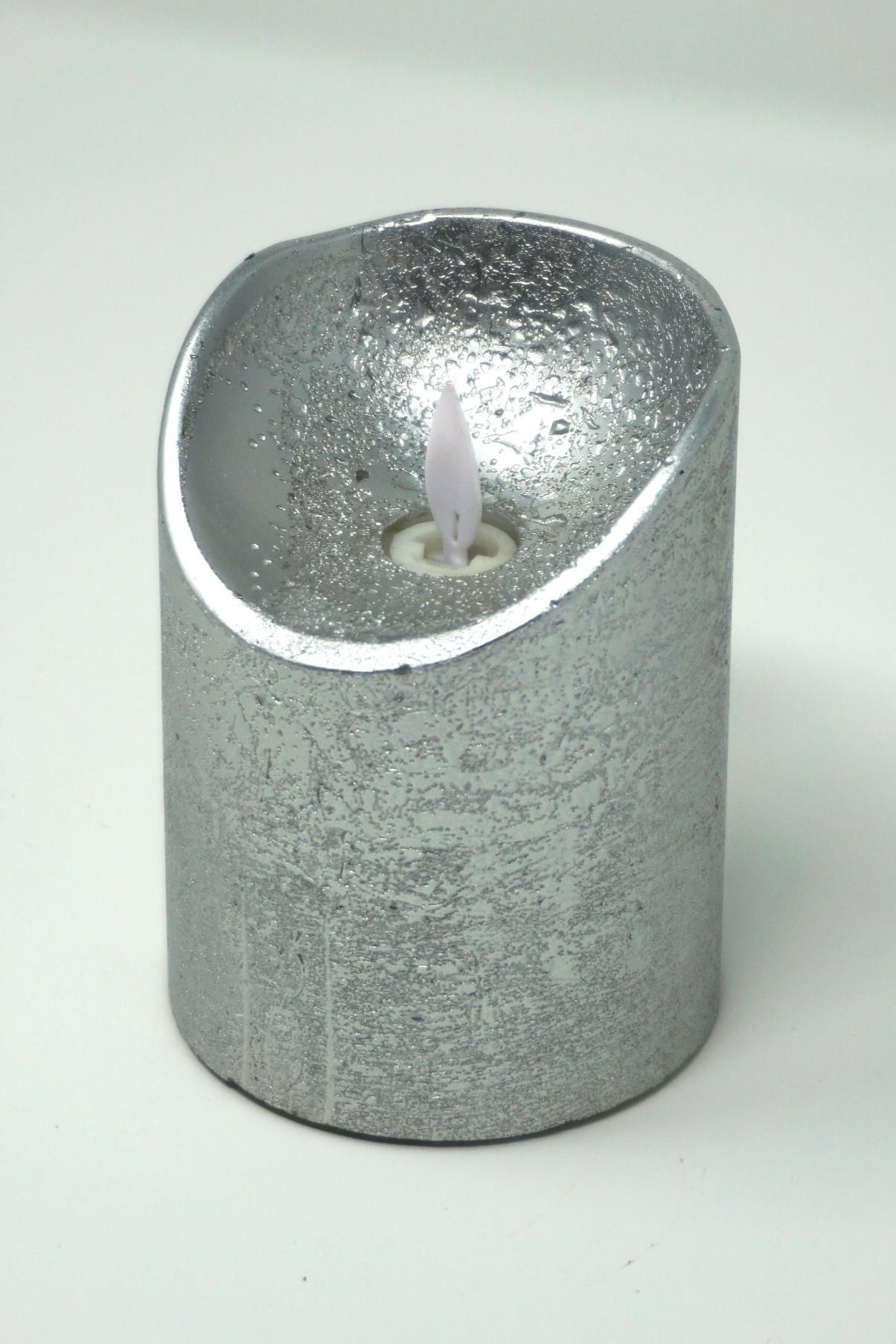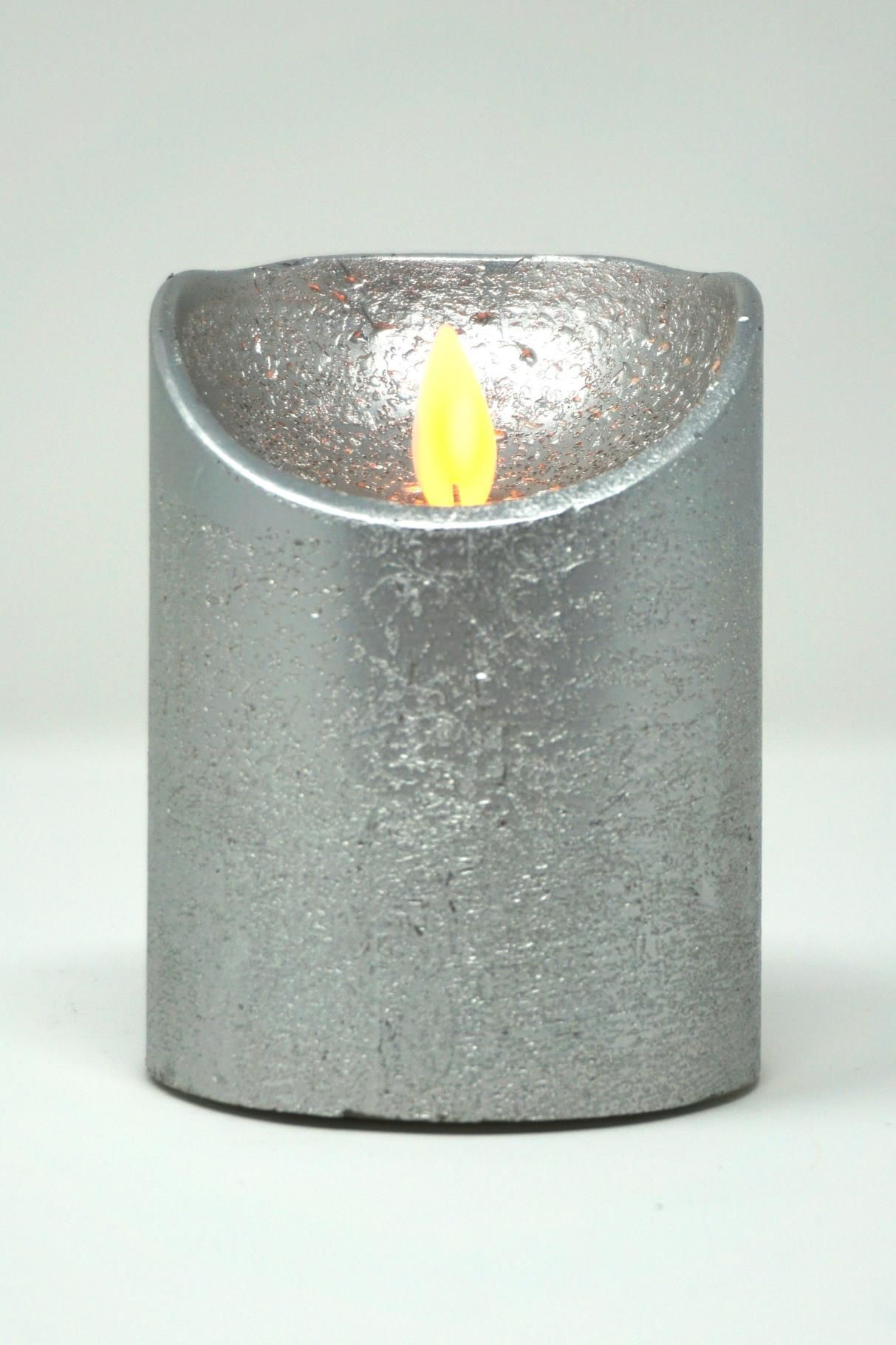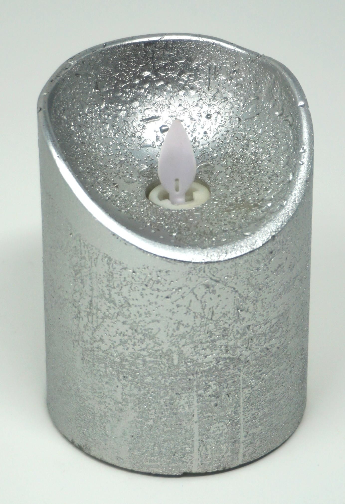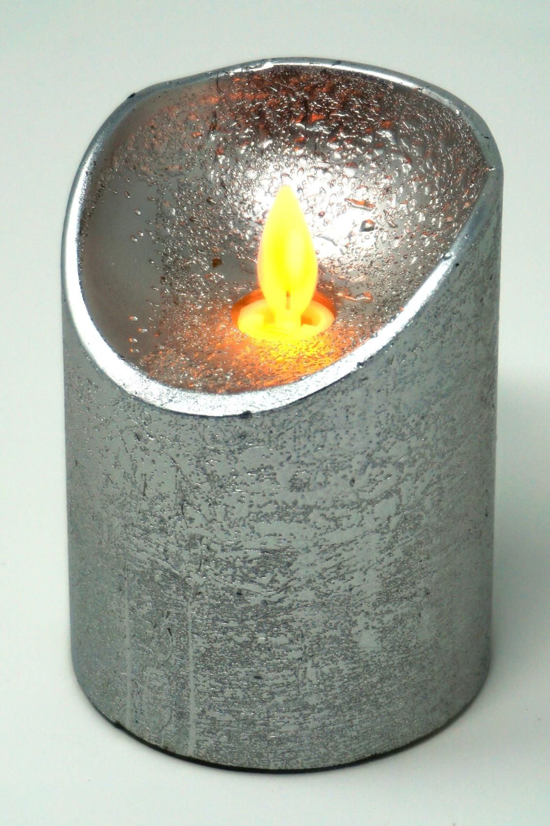 LED echtwachs Stumpenkerze silber Einschaltautomatic + Timer Kerze Höhe 10 cm