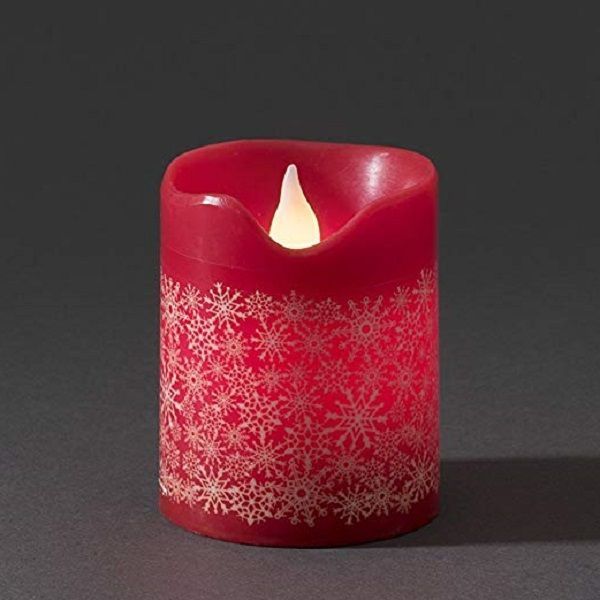 Konstsmide LED Echtwachskerze 10cm rot mit Schneeflocken 4h 8h Timer Konstsmide 1957-555
