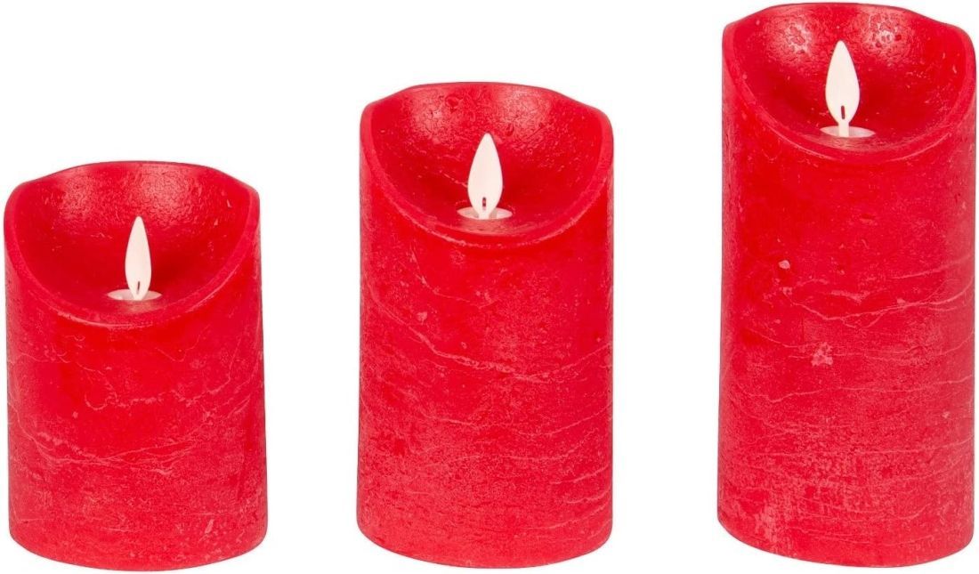 LED Echtwachskerze 3 Stück Rot flackernd 7,5 x 10/12,5/15 cm Fernbedienung Stumpen