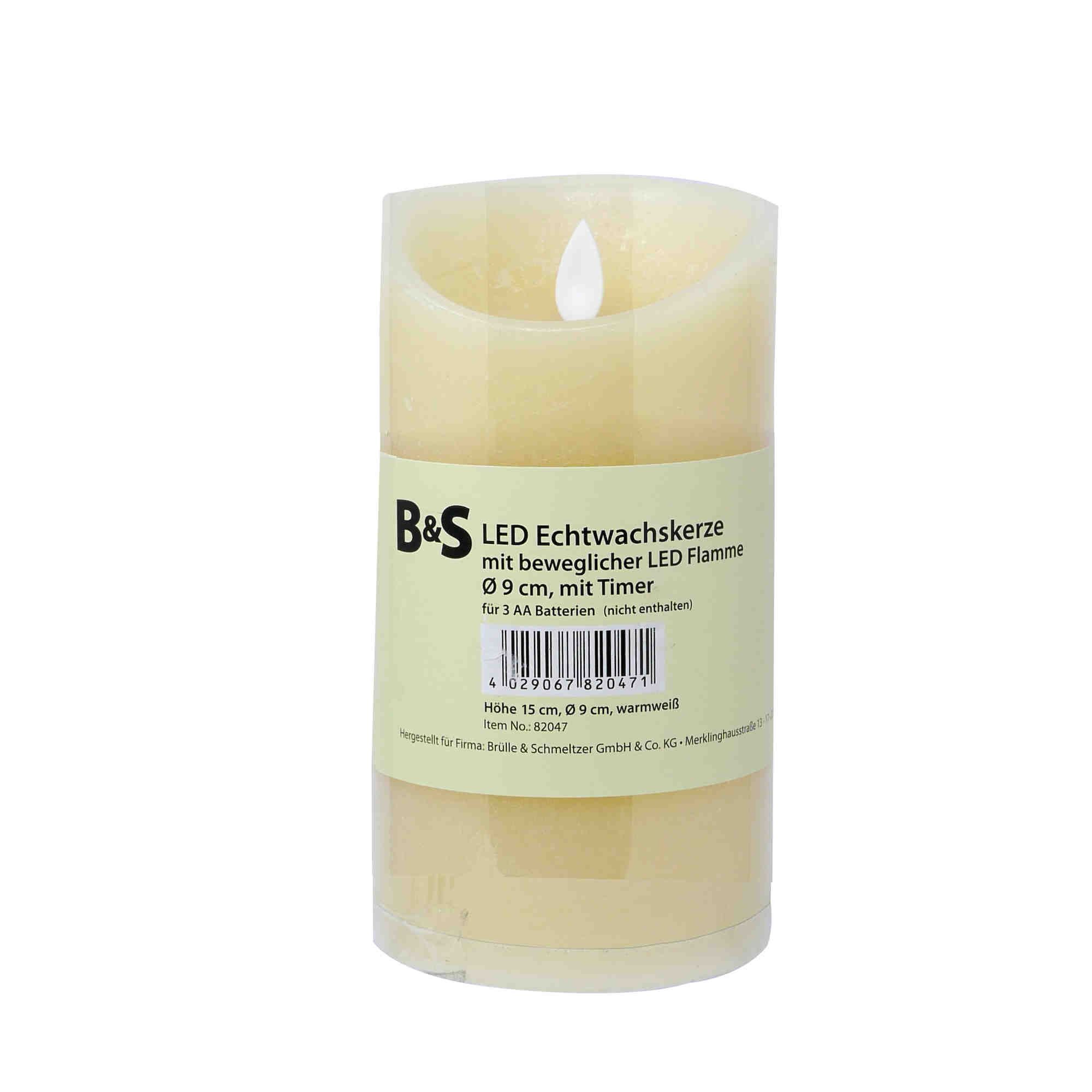 LED Echtwachskerze mit beweglicher Flamme 6 Stunden Timer H 15 cm