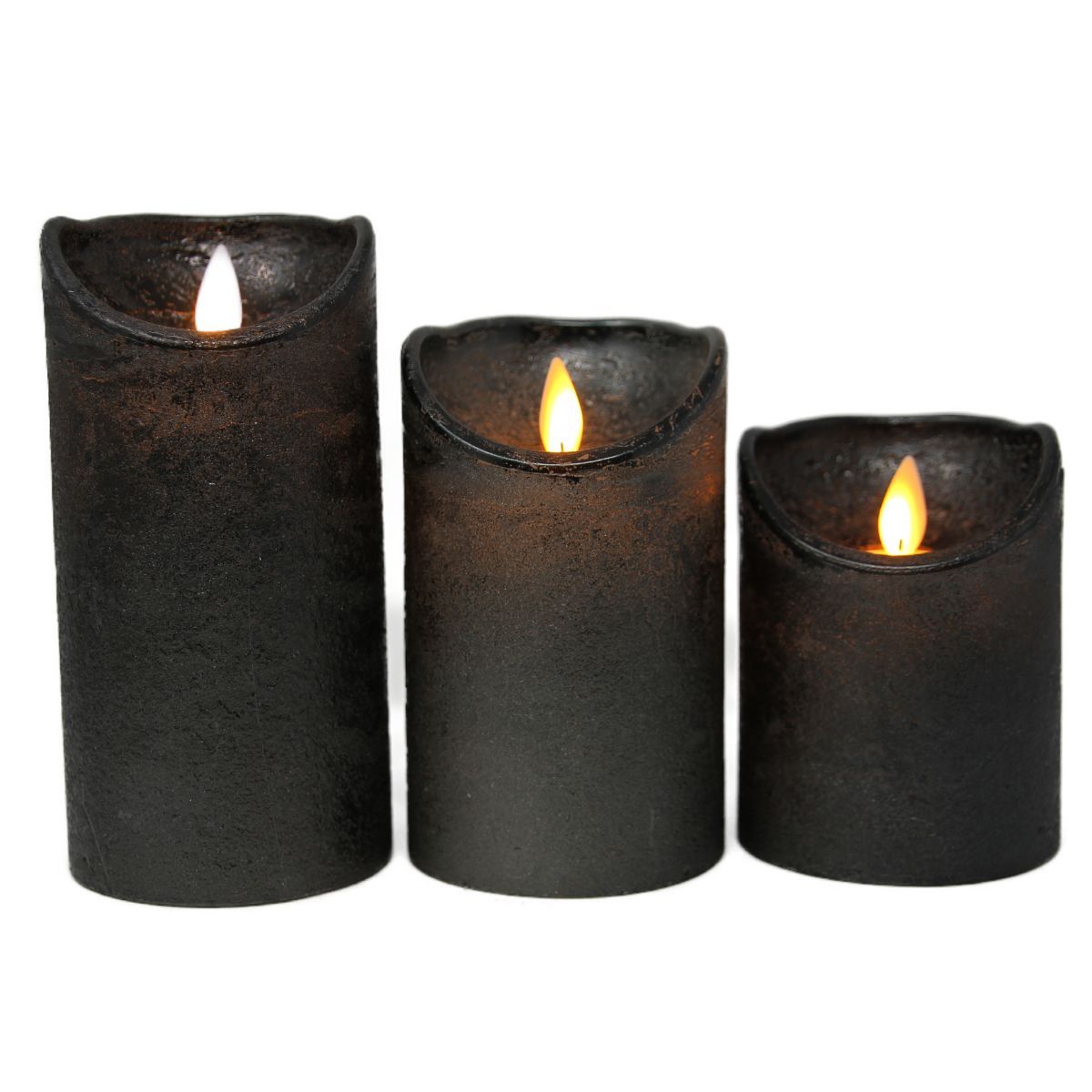 LED Echtwachskerze mit Timer flackender Docht Anthrazit 12.5cm hoch