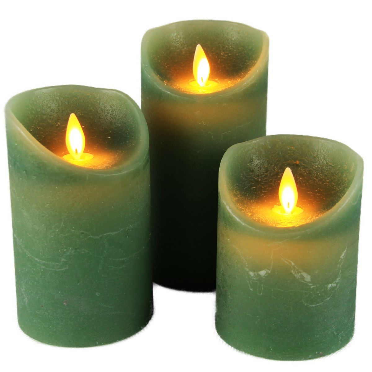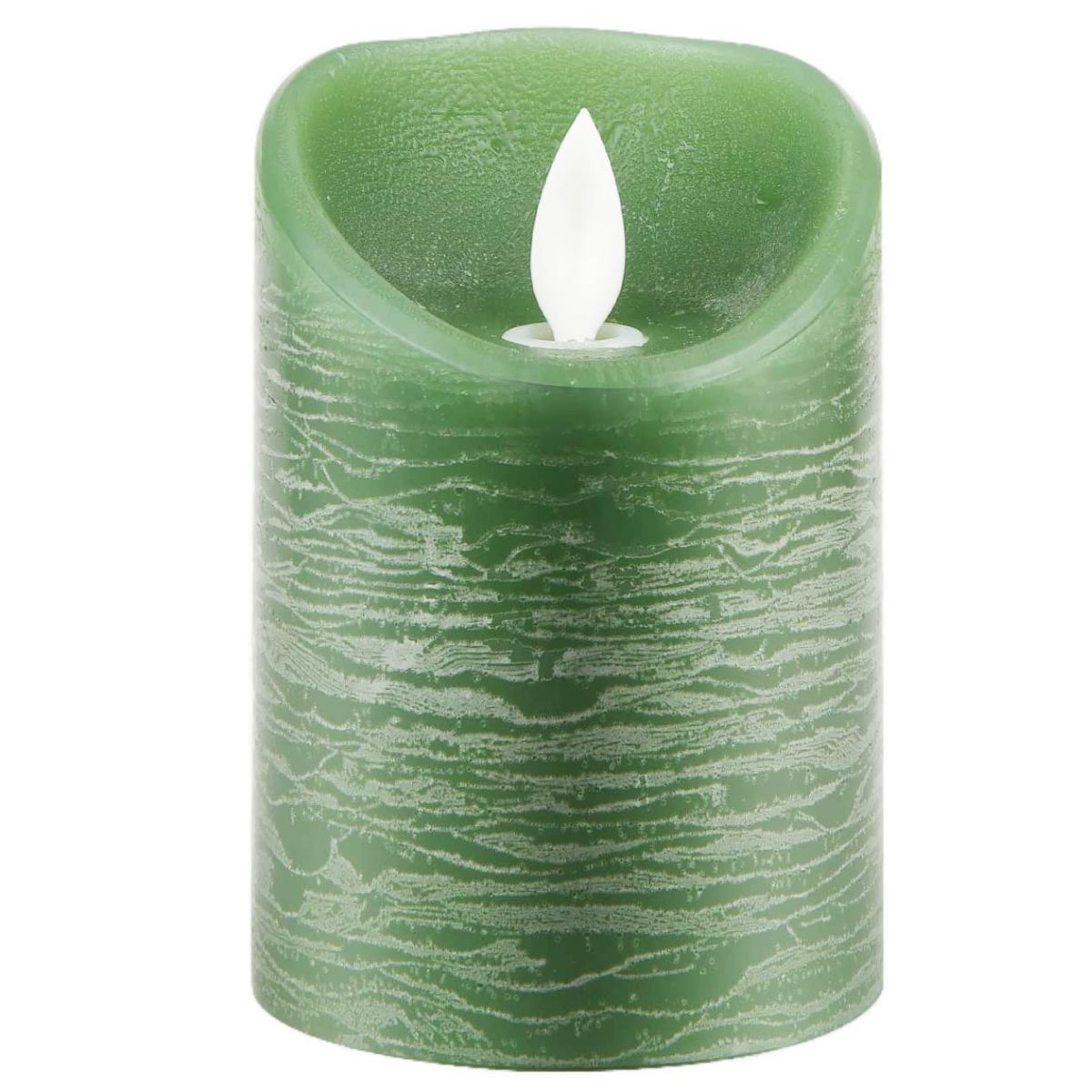 LED Echtwachskerze mit Timer flackender Docht Jade Grün Höhe 15cm