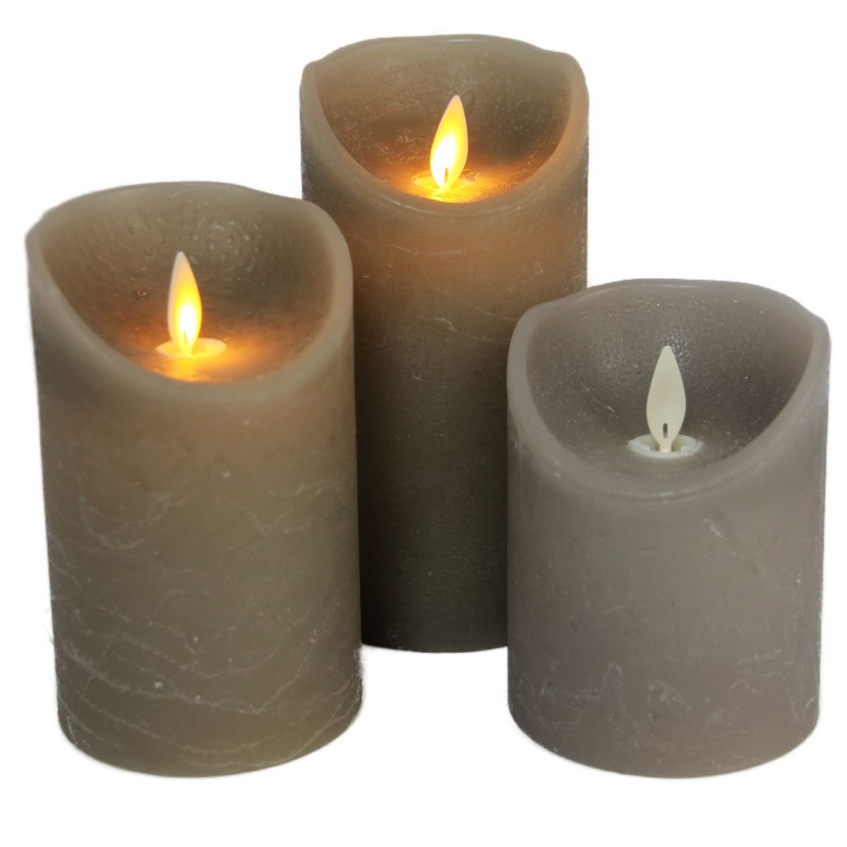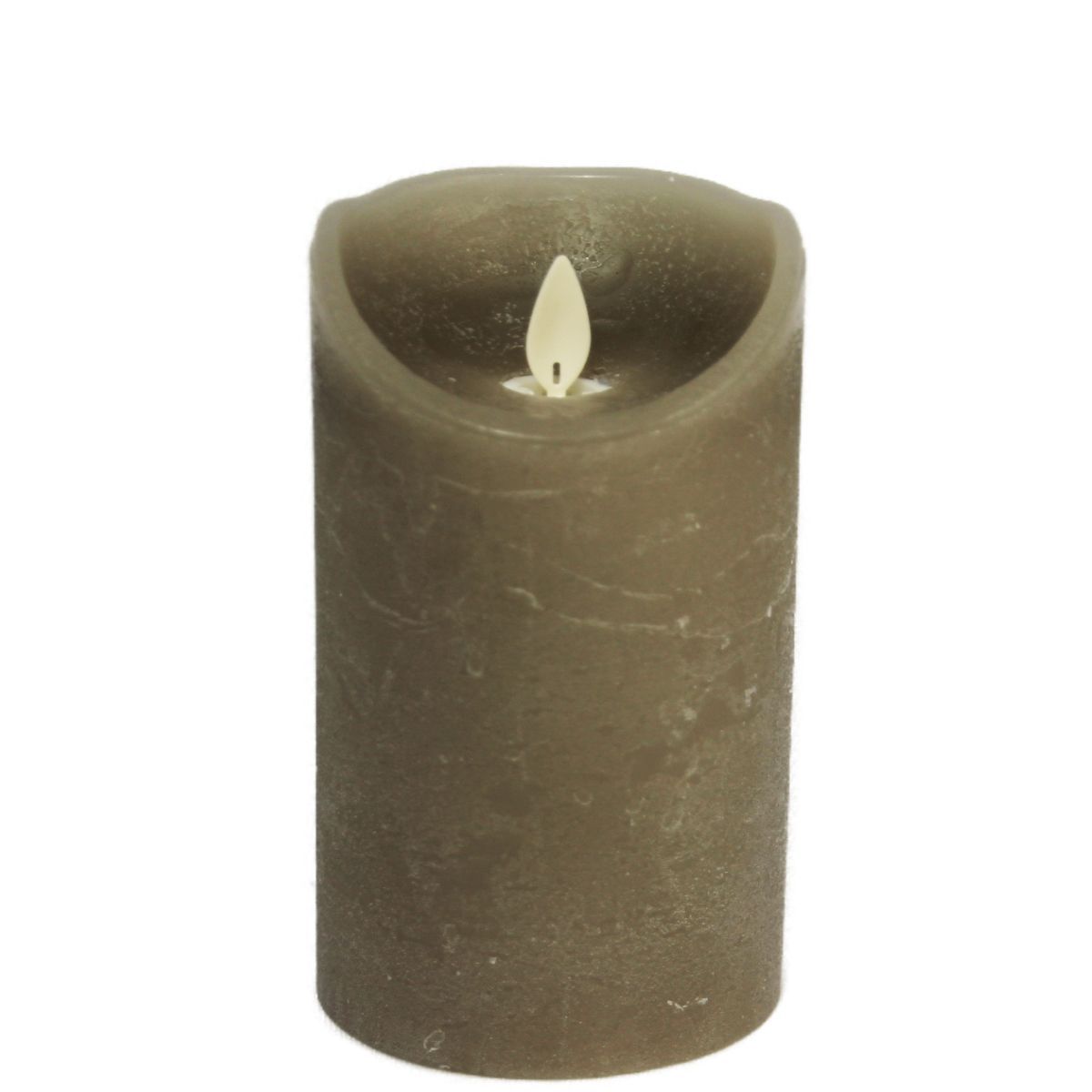 LED Echtwachskerze mit Timer flackender Docht Taupe Höhe 12.5cm