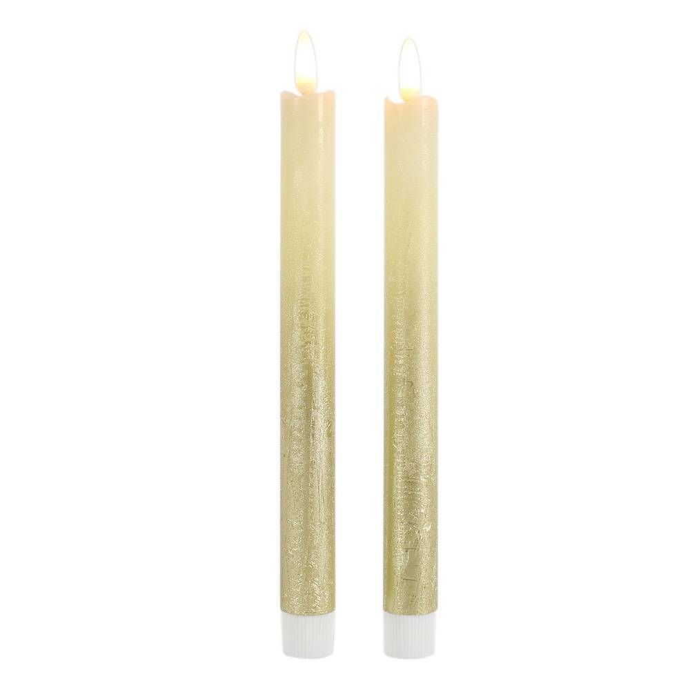 Peha LED Echtwachskerzen Stabkerzen 2er-Set gold/ fading 25,5cm Flackermodus BD-10140