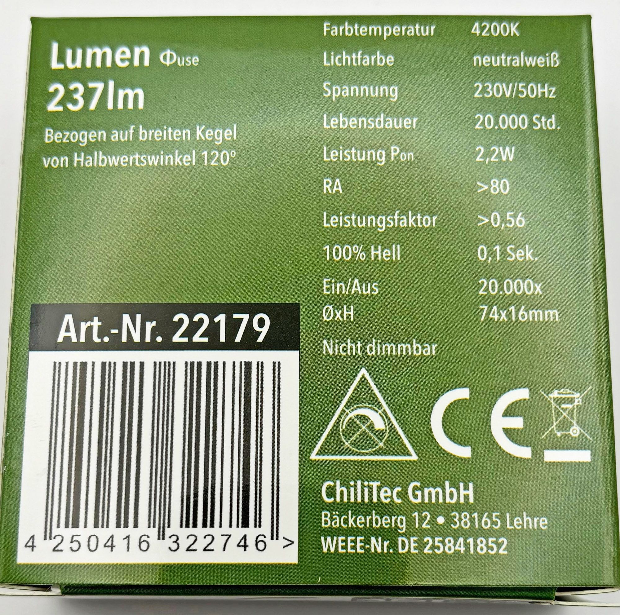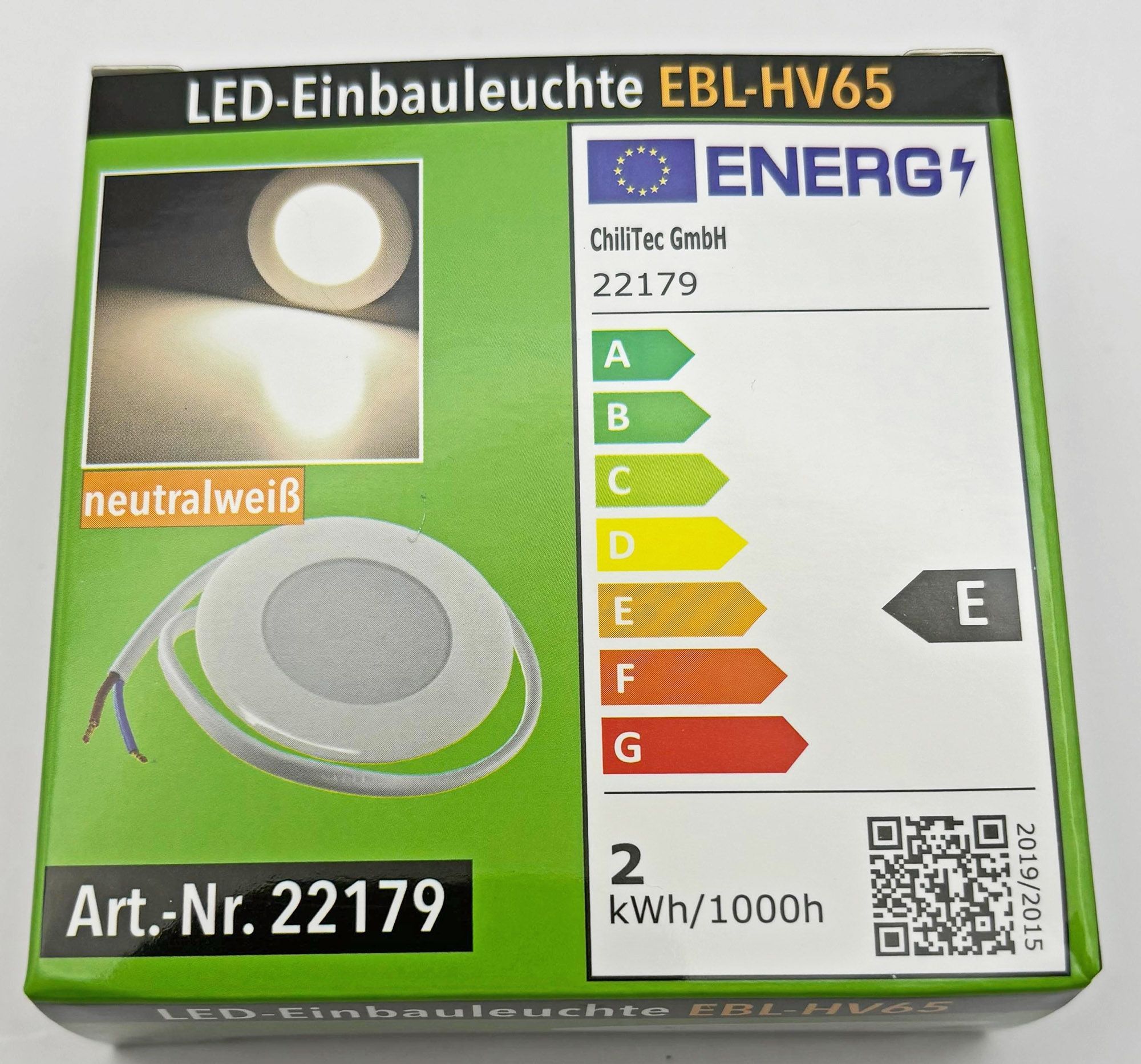 ChiliTec LED-Einbauleuchte "EBL-HV65w", weiß2 Watt, 230V, 4200K, 237Lm, neutralweiß