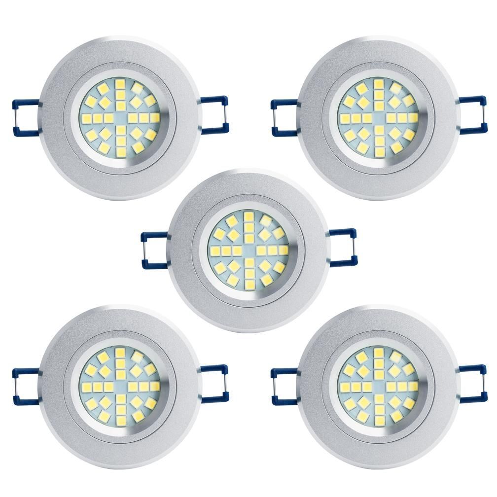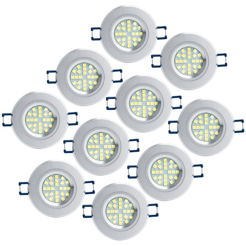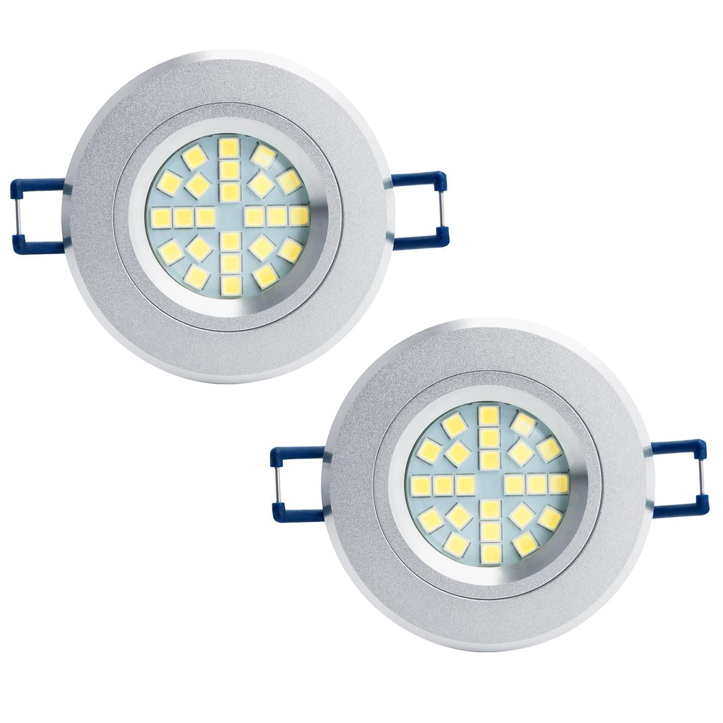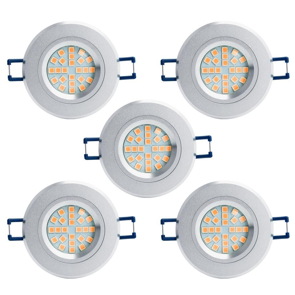 LED Einbauleuchten-Set - Rahmen Aluminium gebürstet / GU10 Fassung / SMD LED / 4W