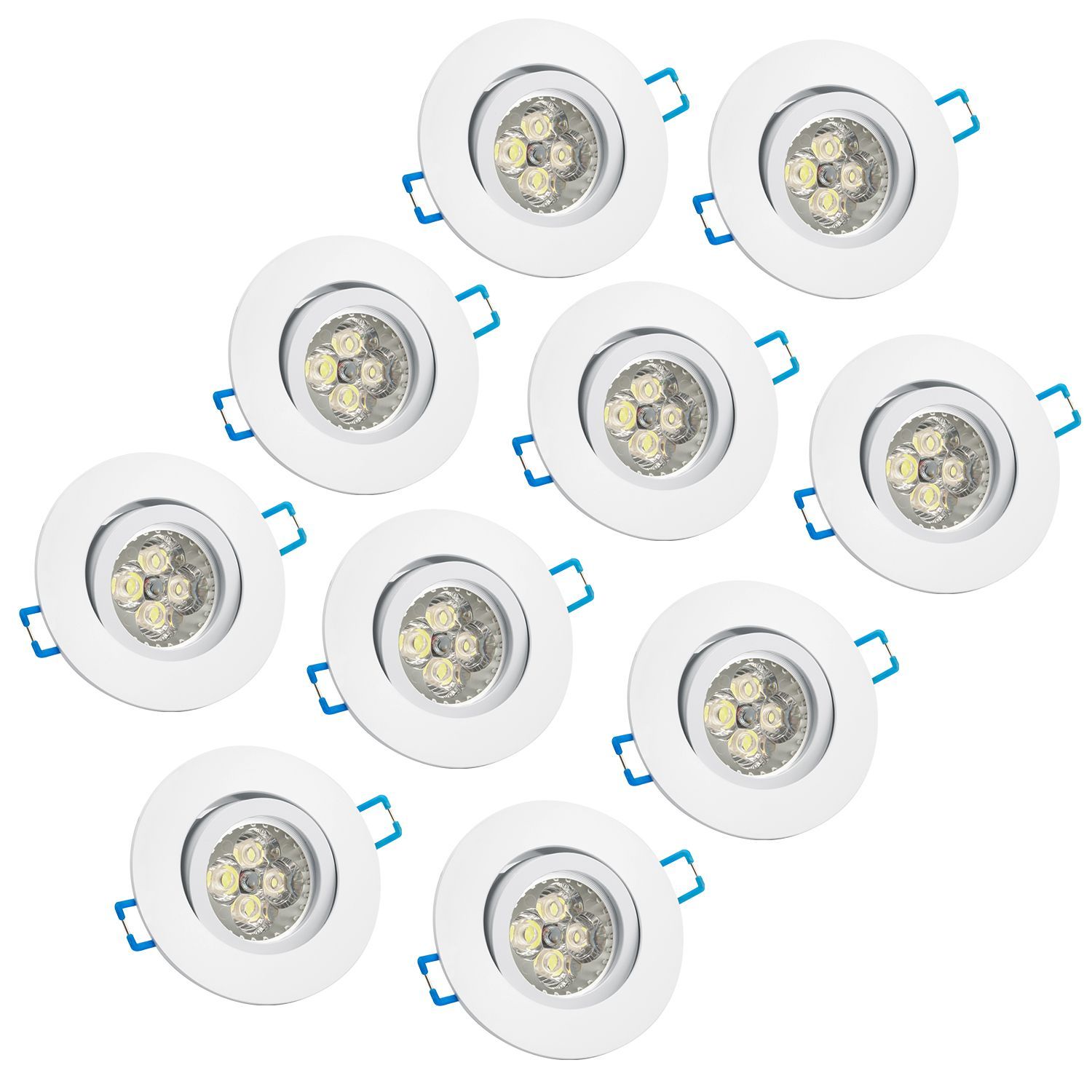 LED Einbauleuchten-Set - Rahmen Aluminium weiß schwenkbar / GU10 Fassung / High ...