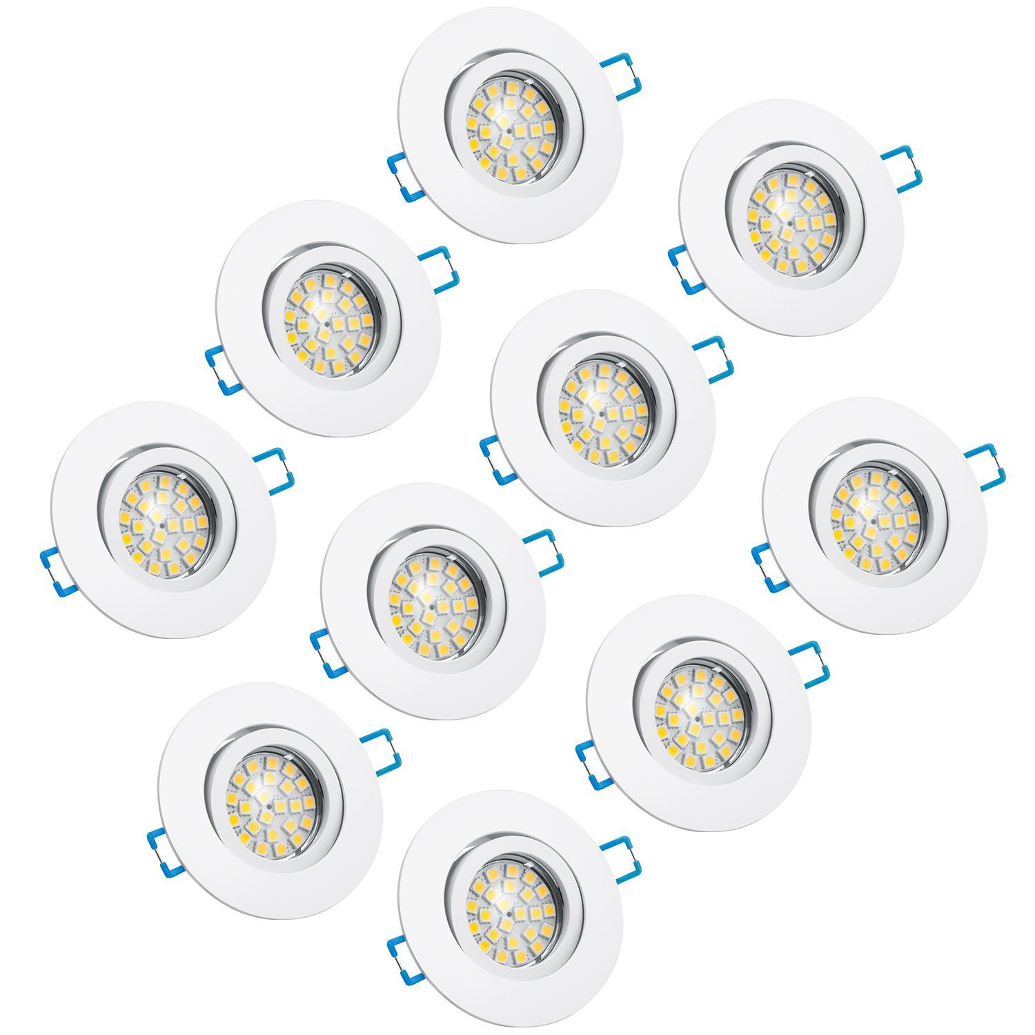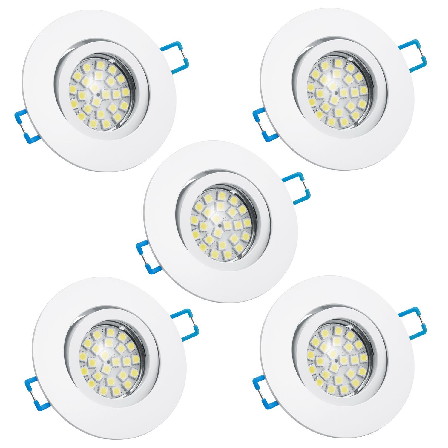 LED Einbauleuchten-Set - Rahmen Aluminium weiß schwenkbar / GU10 Fassung / SMD