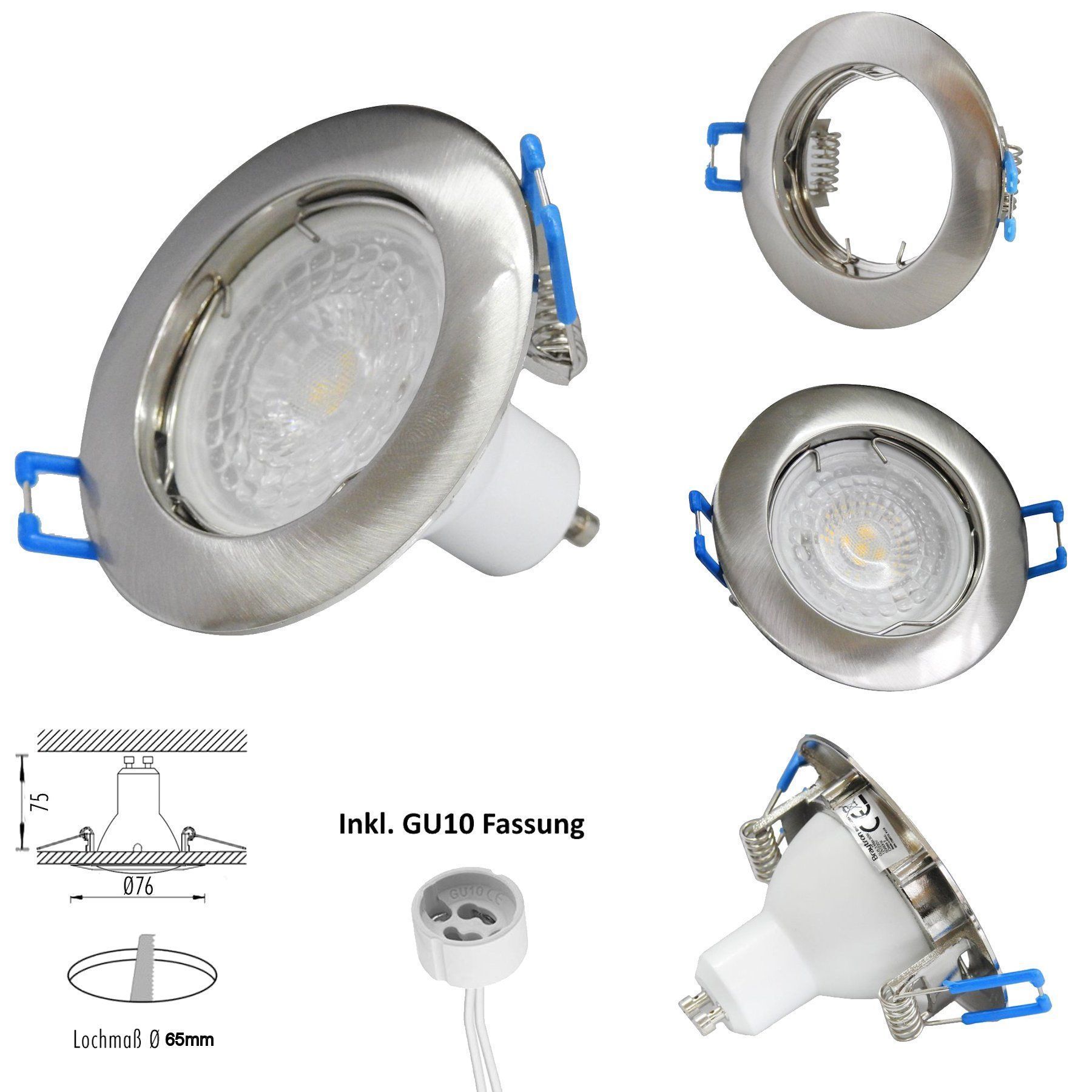LED Einbaustrahler Rund Silber mit LEuchte und Fassung