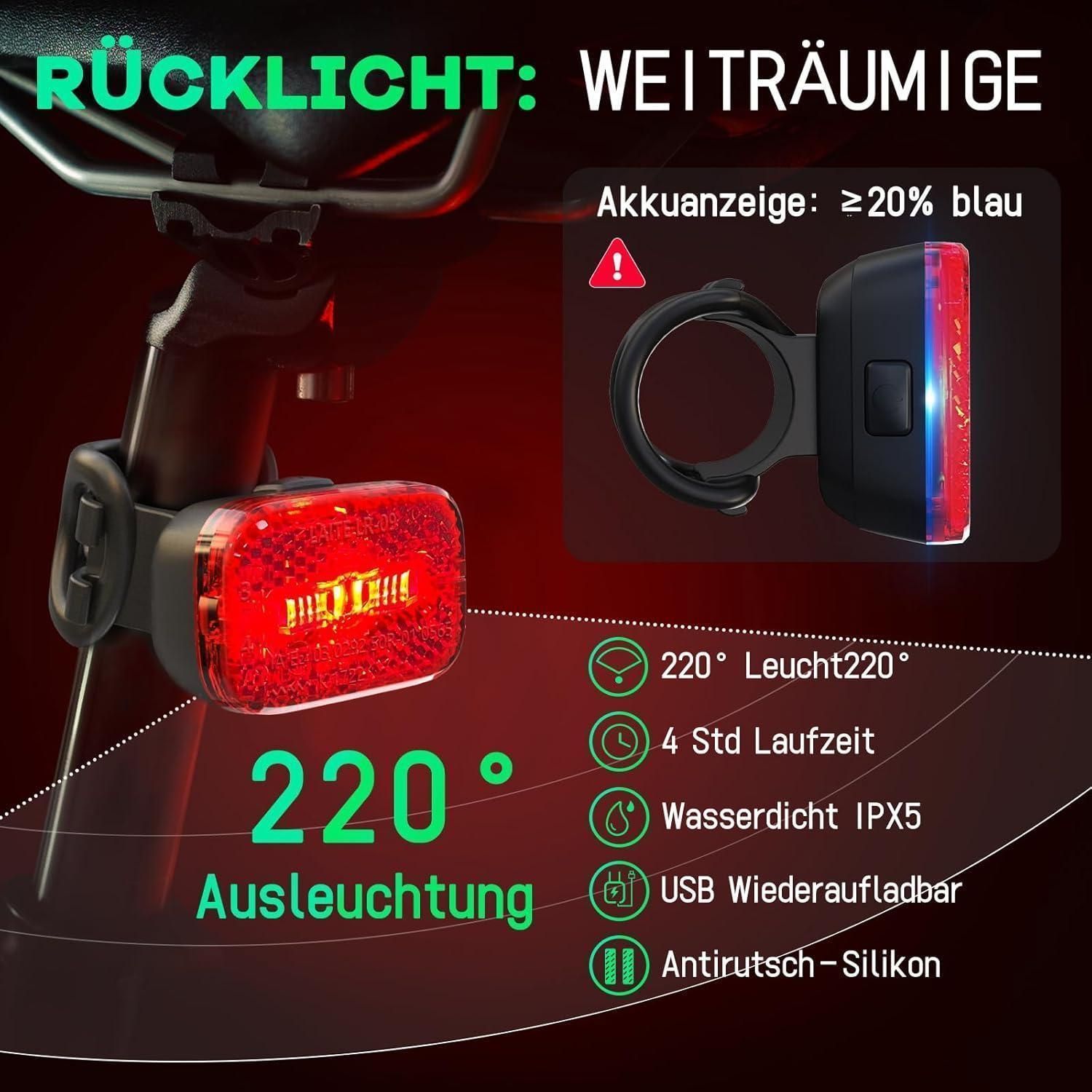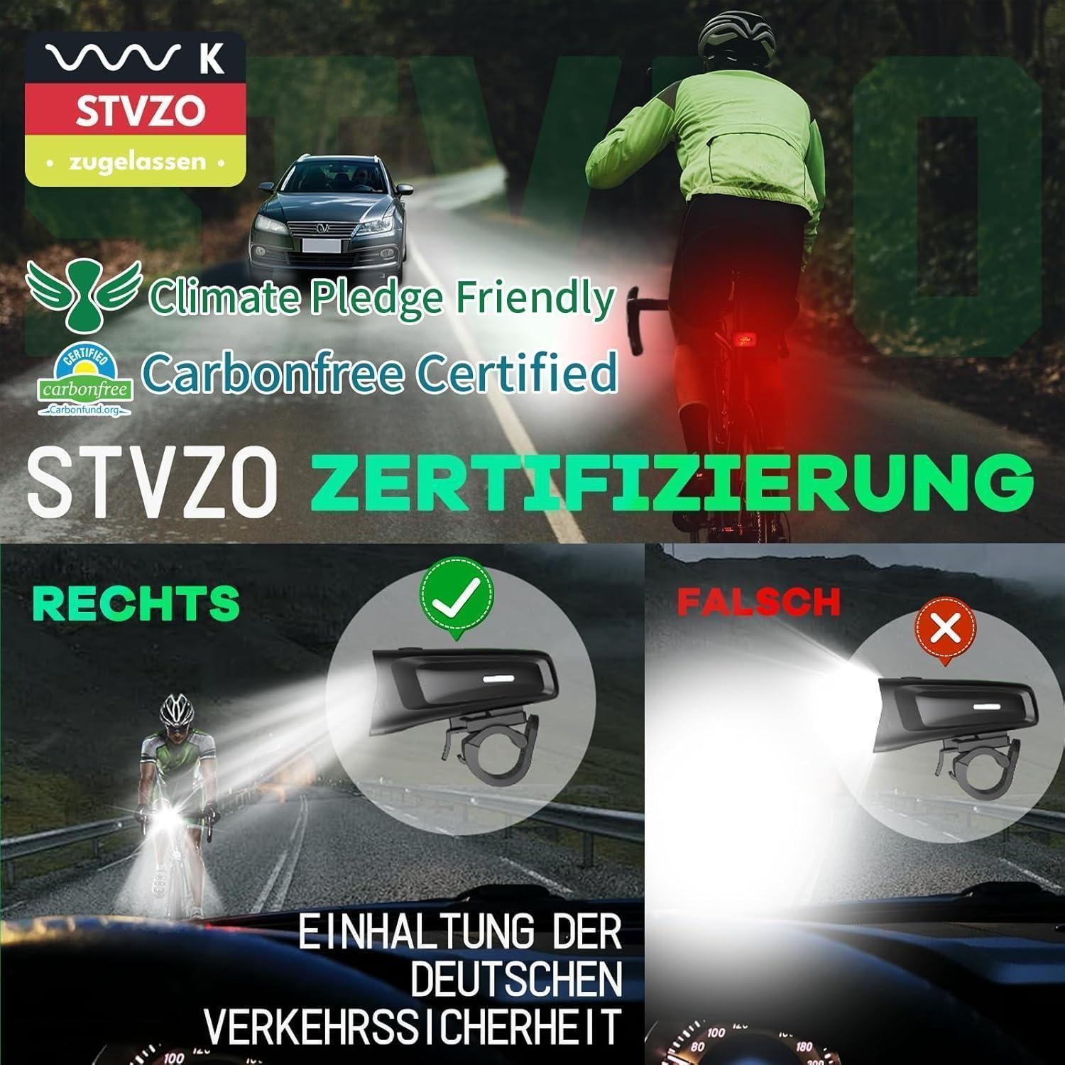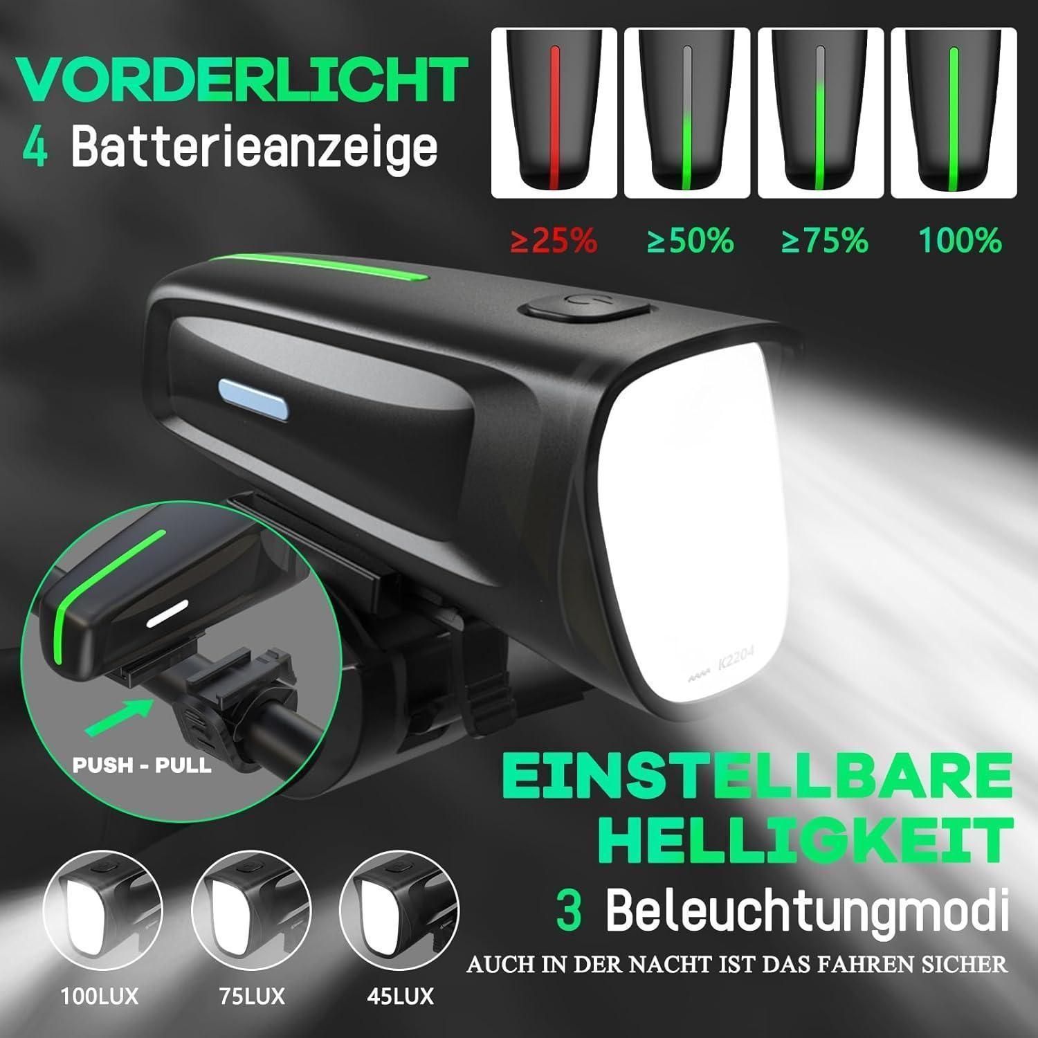 LED Fahrradlicht Vorne 100 Lux StVZO Zugelassen IPX5 USB Aufladbar