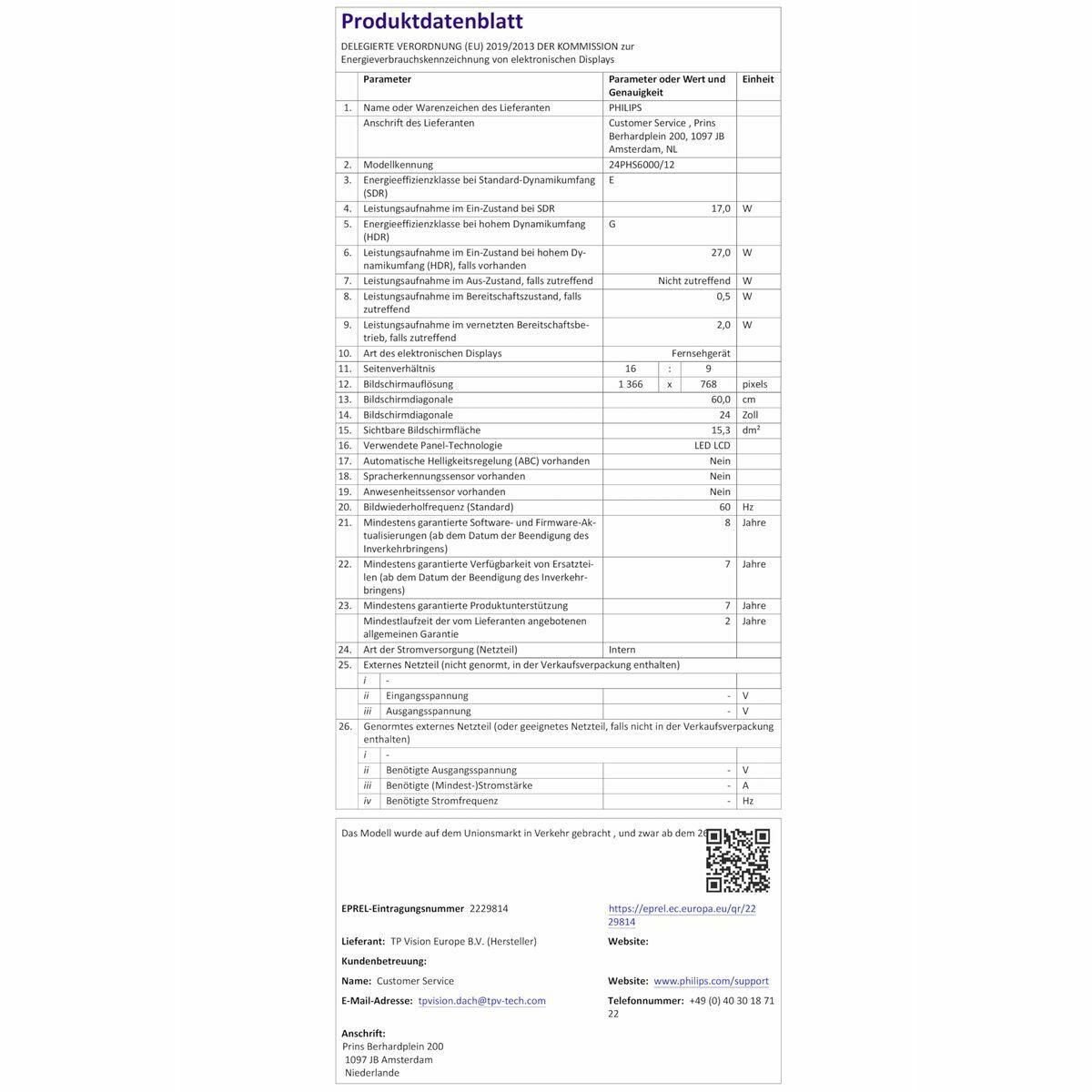 Philips LED-Fernseher Philips 24PHS6000 24 Zoll HD