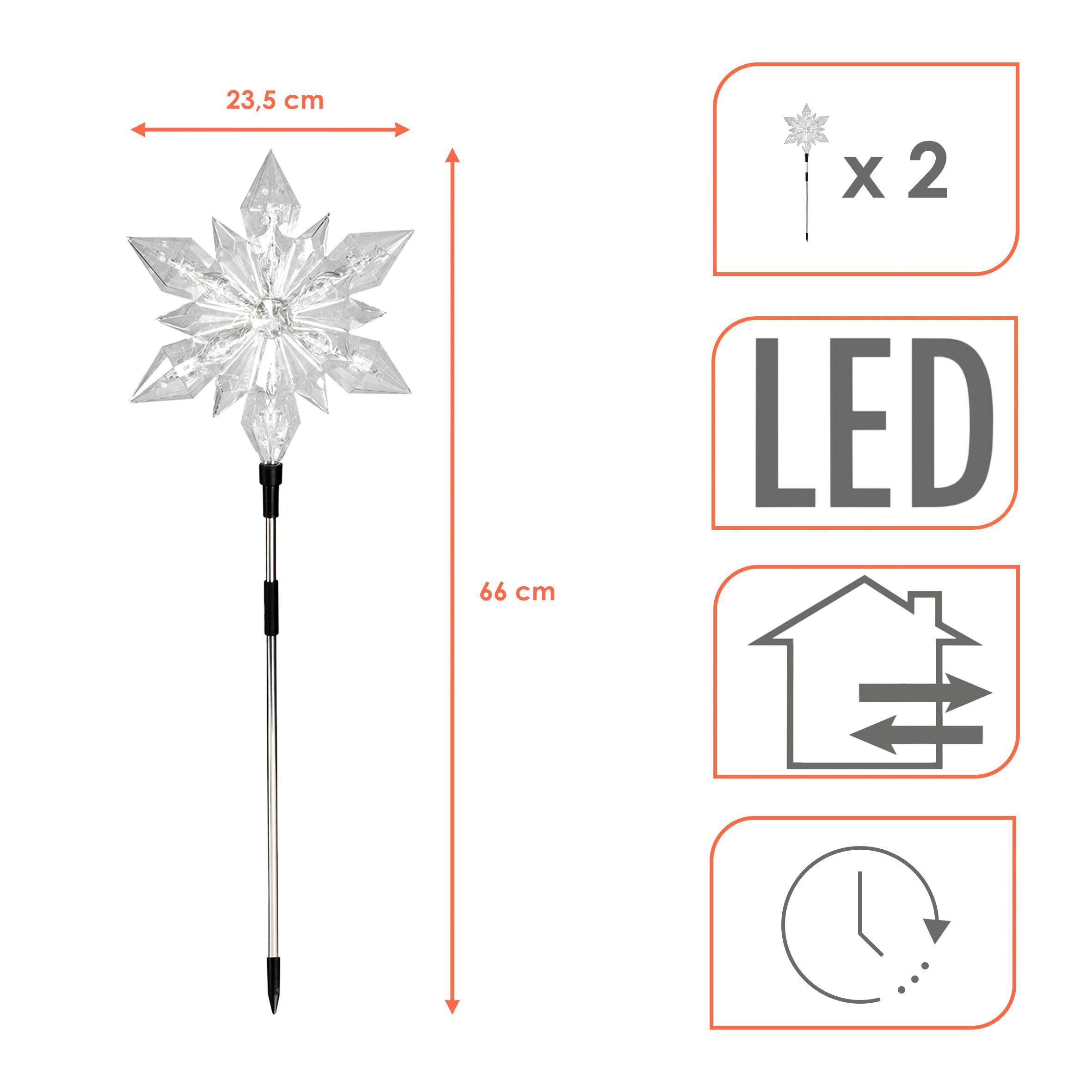 LED Garten Stecker Stern 2er Set - 66 cm - Schneeflocke Weihnachts Deko Außen