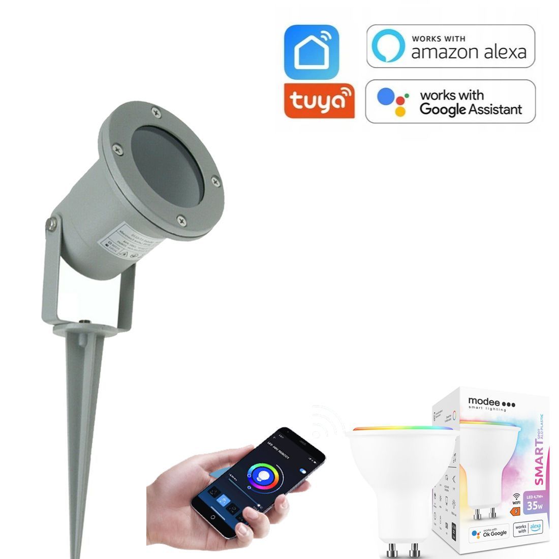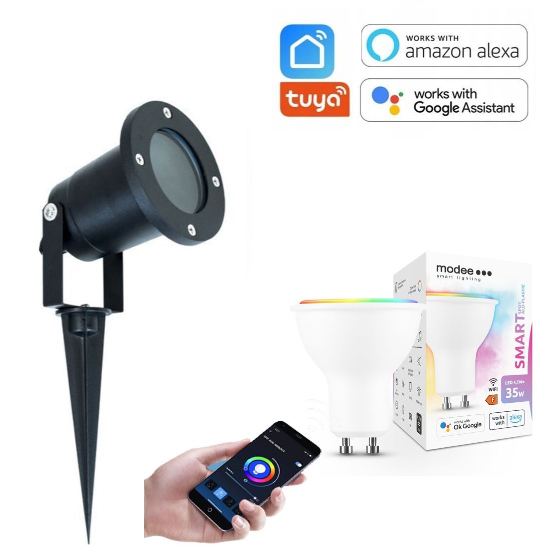 LED Gartenstrahler mit Erdspieß Außenleuchte Gartenleuchte RGB-W GU10 LED WiFi IP65