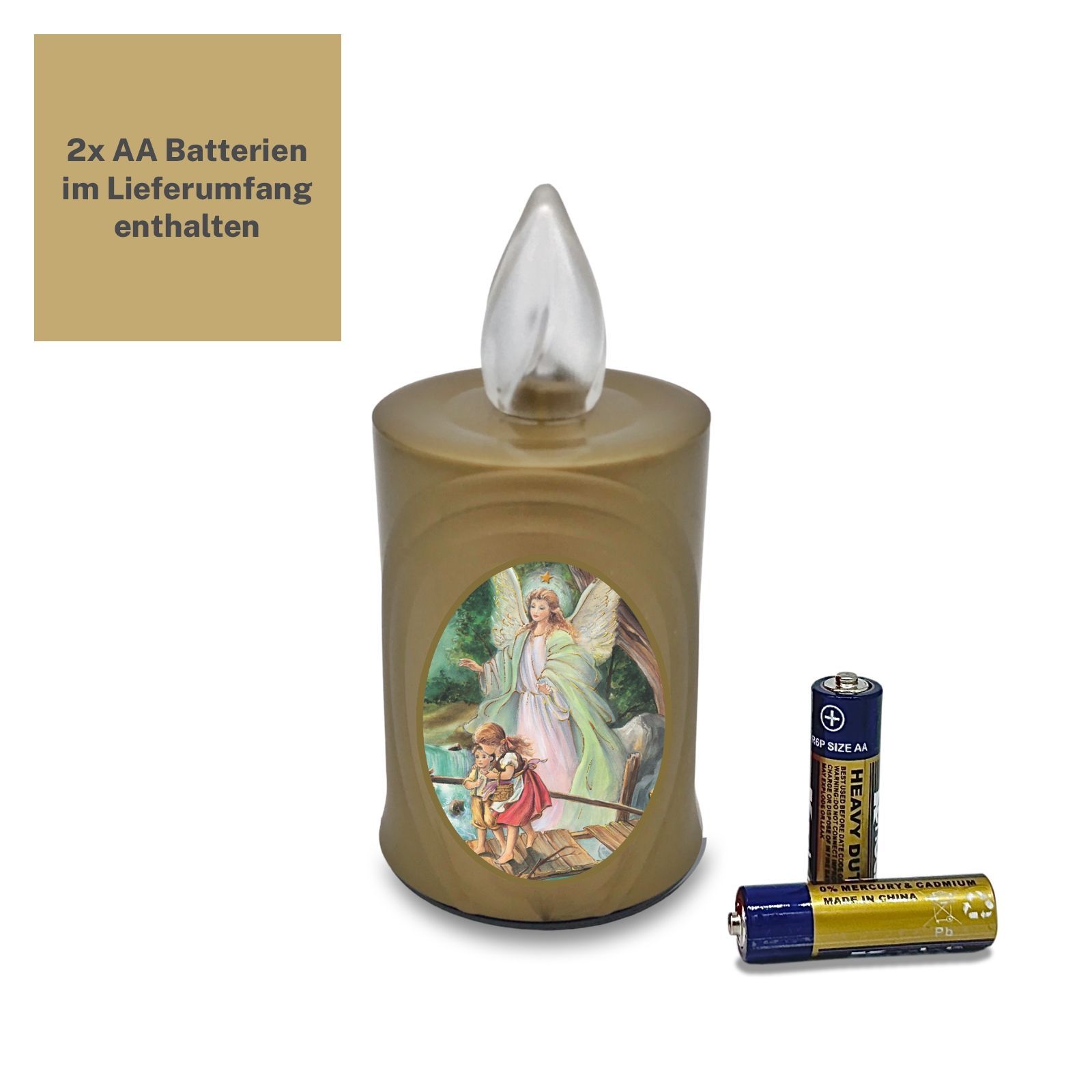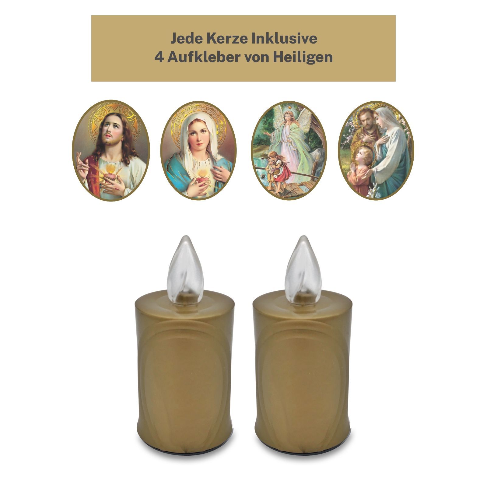 LED Grabkerze Flackereffekt lange Brenndauer gold inkl. Auswahl an Heiligen