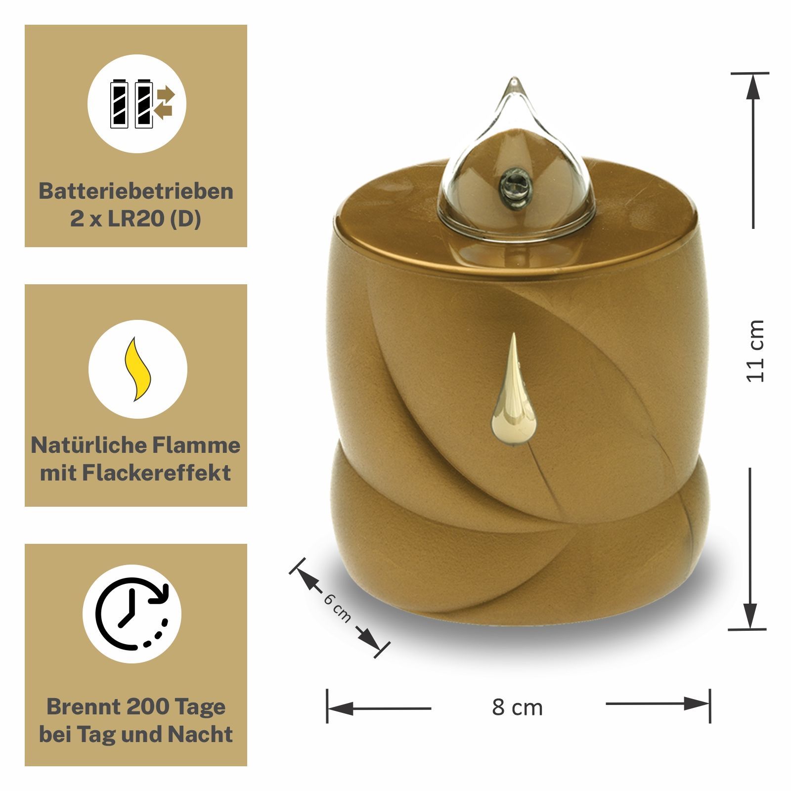 LED Grabkerze Flackereffekt lange Brenndauer Trauerlicht gold Träne