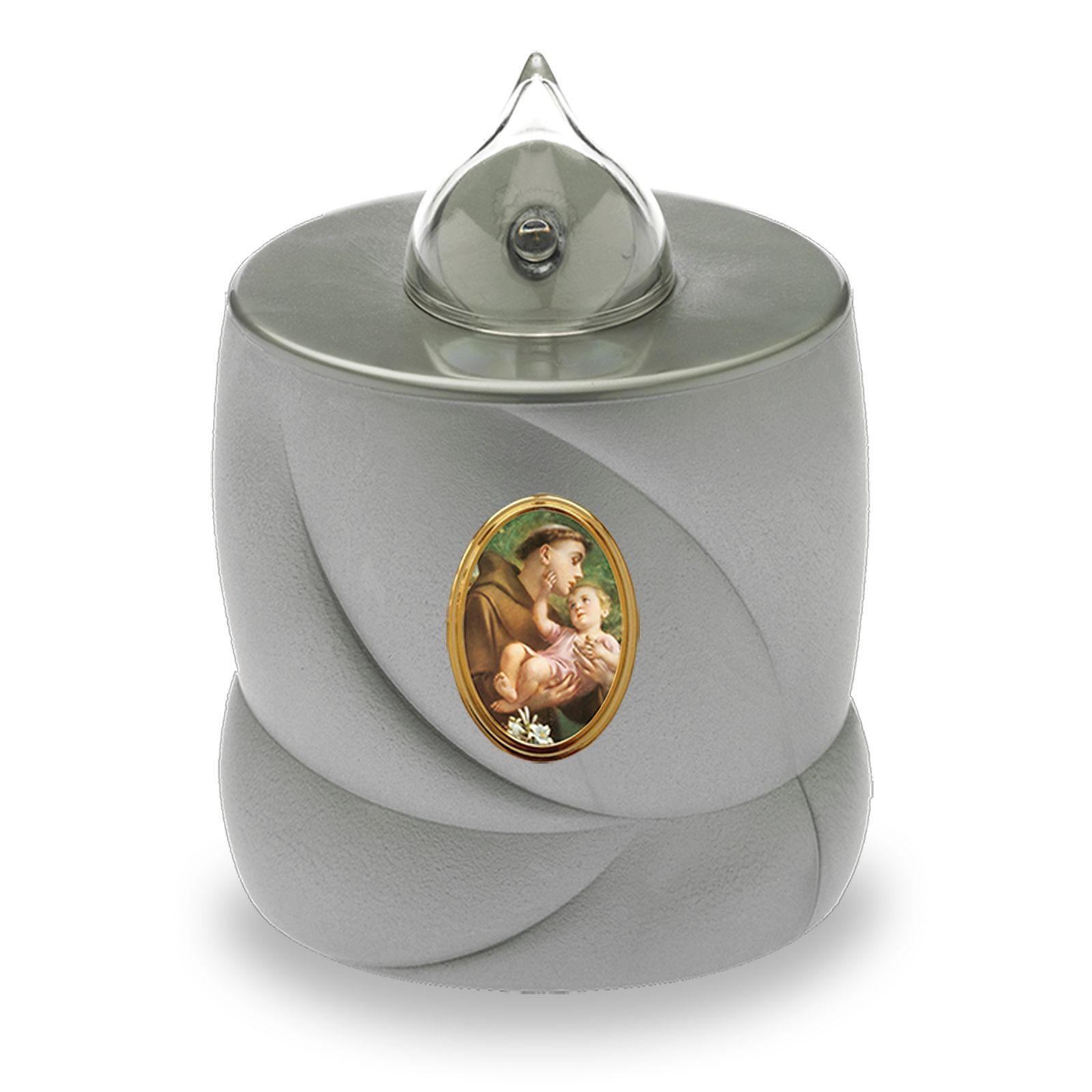 LED Grabkerze Flackereffekt lange Brenndauer Trauerlicht silber Heiliger Antonius