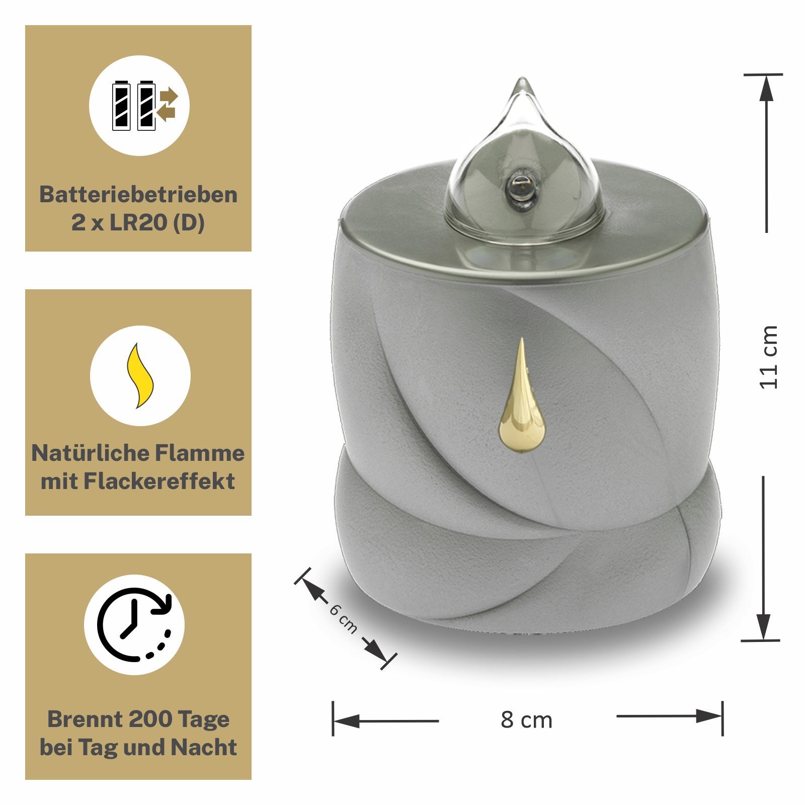 LED Grabkerze Flackereffekt lange Brenndauer Trauerlicht silber Träne