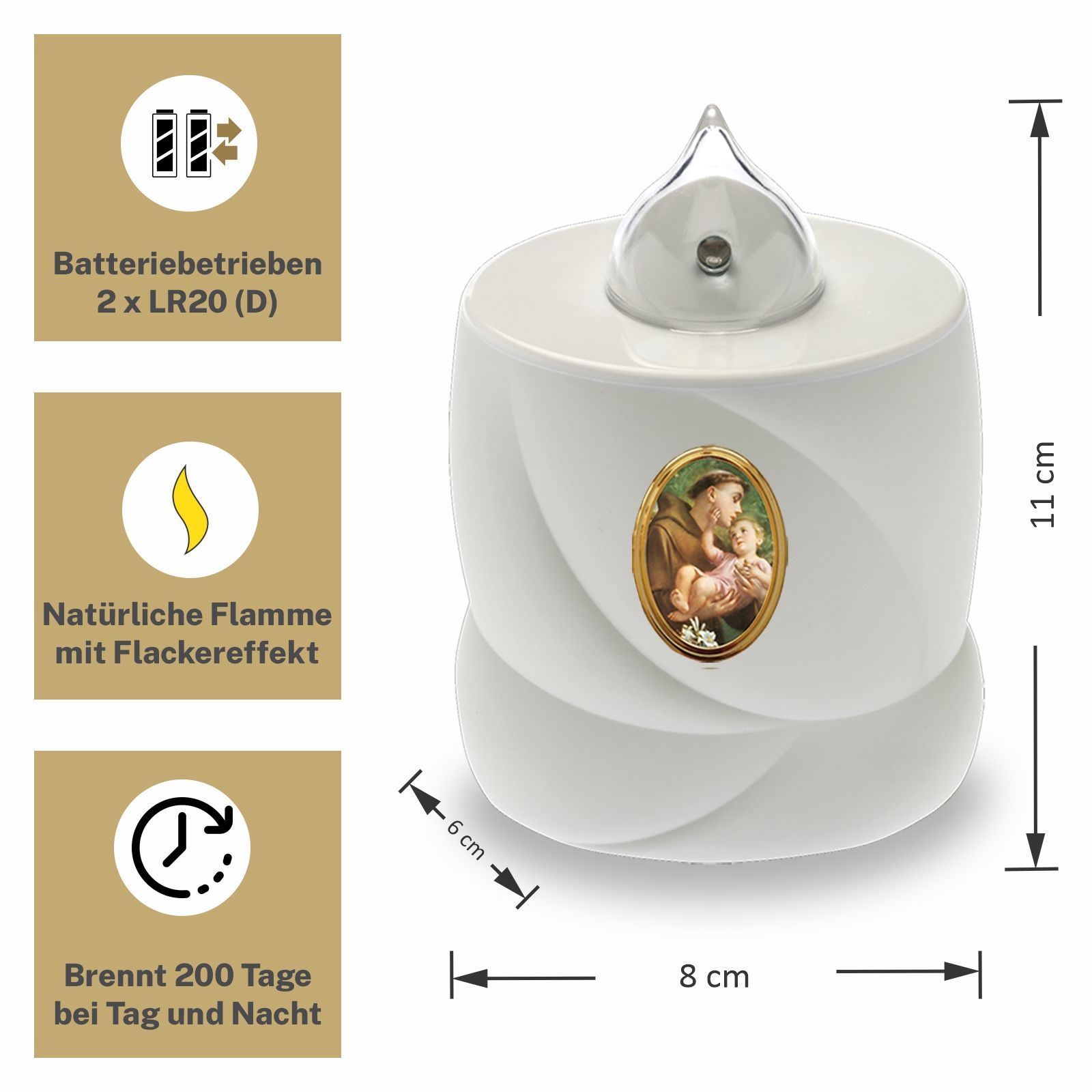 LED Grabkerze Flackereffekt lange Brenndauer Trauerlicht weiß Heiliger Antonius