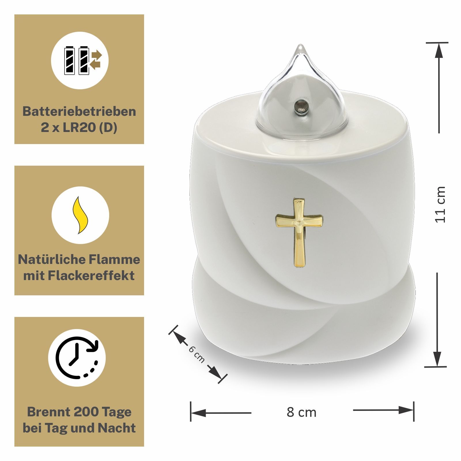 LED Grabkerze Flackereffekt lange Brenndauer Trauerlicht weiß Heiliges Kreuz