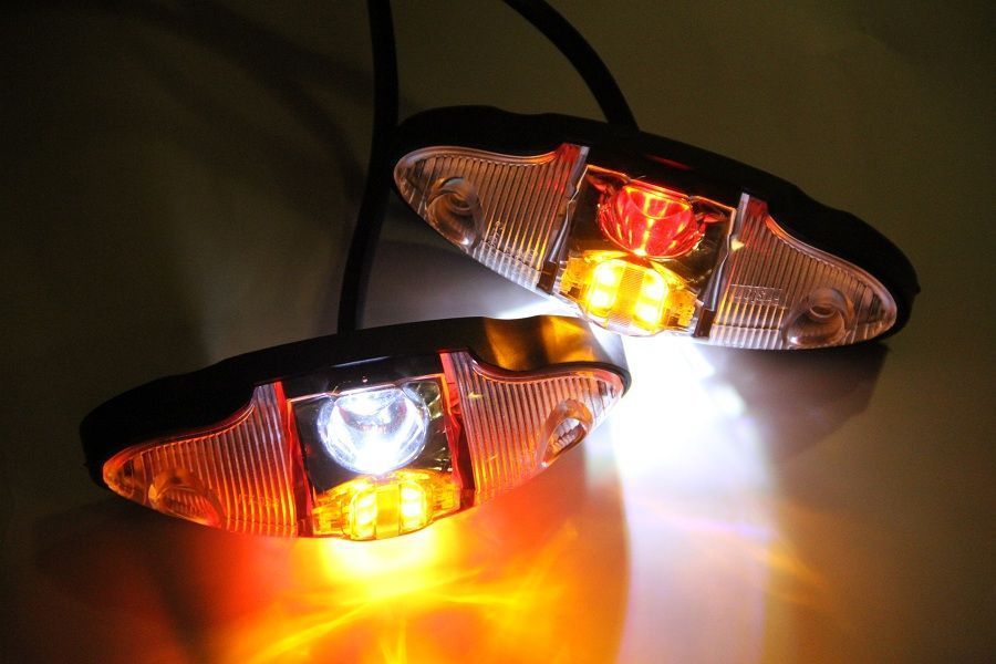 >>> www.anhaenger-beleuchtung.de<<< 2stück Begrenzungsleuchten - Umrissleuchten mit integrierter Seitenmarkierungsleuchte (LEDrot 1 LED,gelb 4 Leds,weiß1 Led) für 12V 24V. wird mit Leuchtmittel ausgeliefert mit Befestigungsmaterial 3 - funktionsfähige Große Version - Stromverbrauch