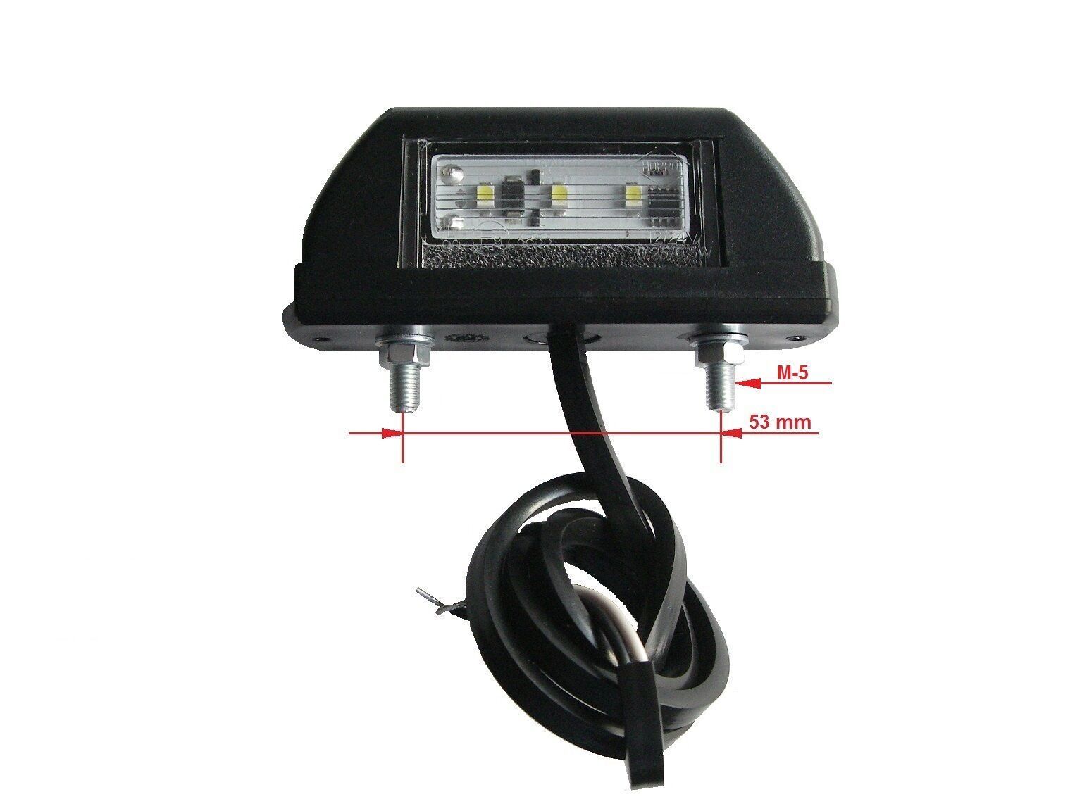 Autospiegelglastechnik Wir bieten ein Technische Daten - Betriebsspannung: - 12 Volt (0,25 Watt) und 24 Volt (0,5 Watt) - E-Prüfzeichen & GGVS ( Gefahrgutverordnung Straße ) Zulassung - Leuchtmittel: 4 LED´s - Material: Kunststoff - Kabellänge: 20 cm - Befestigung: mit 2 Schrauben - Abstand zwischen