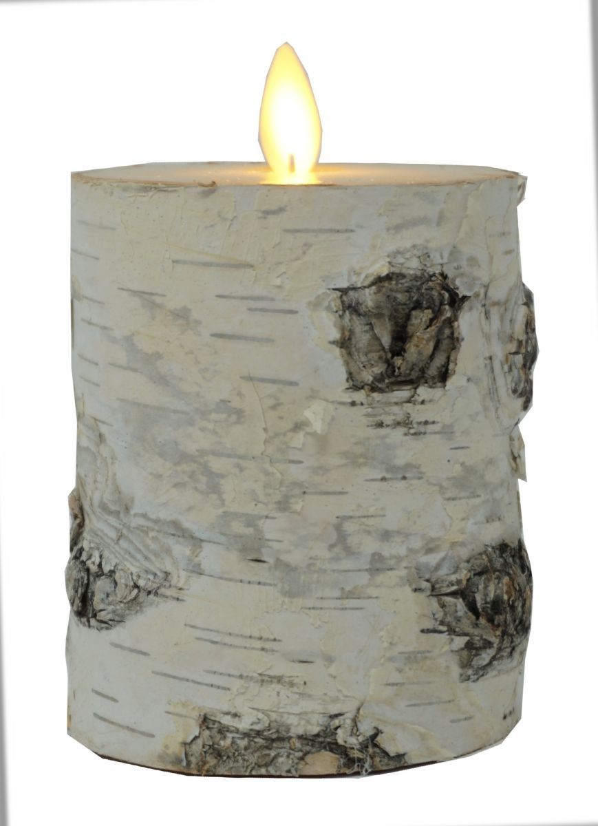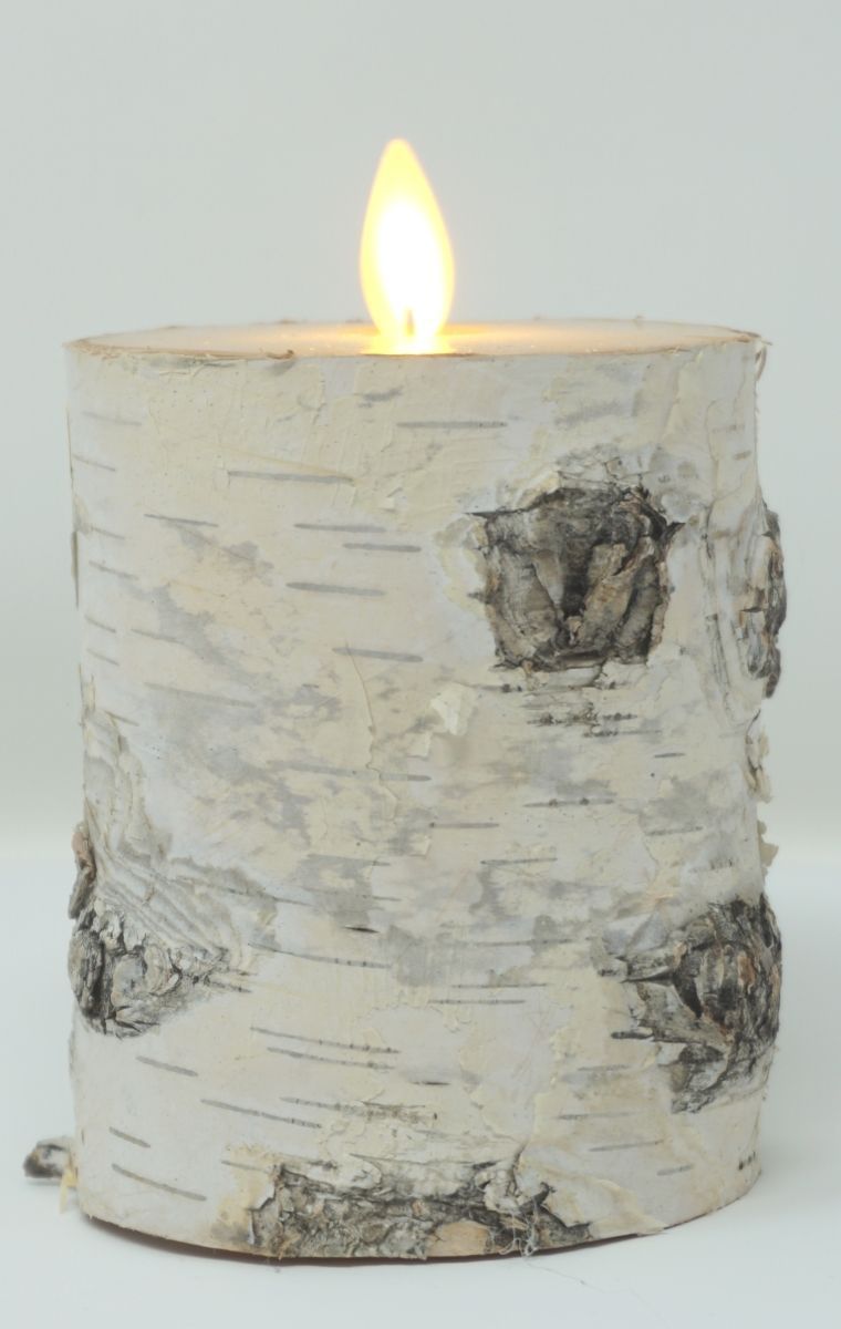 LED Kerze 10 cm Natur-Baumrinde BIRKE HELL Timer bewegliche Flamme Kerze Teelicht
