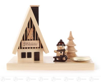 • Räucherhaus Skihütte m. Schneemann, erzenhalter für Kerze d=14mm 15cmx11cmx7,5cm
