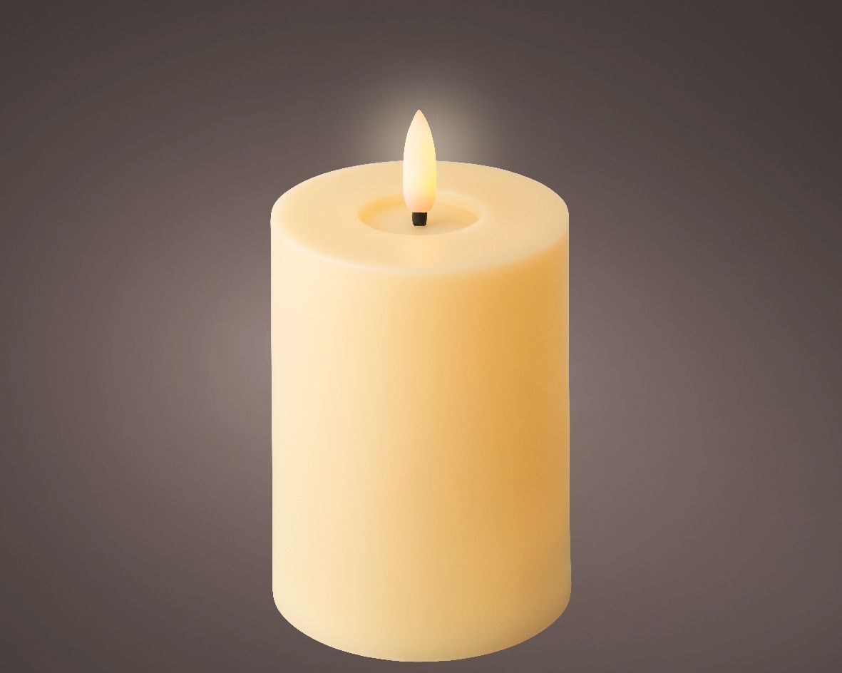 LED Kerze 7x12cm mit Timer Outdoor Kunststoff Creme / Warmweiß