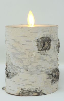 • LED Kerze 10 cm echte Baumrinde BIRKE HELL Kerzen mit Timer bewegliche Flamme