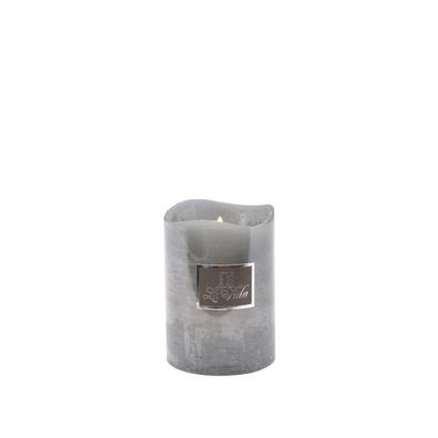 • LED Kerze Grau hochglanz 3D Flamme 6 Stunden Timer 7,5 x 7,5 Ø cm