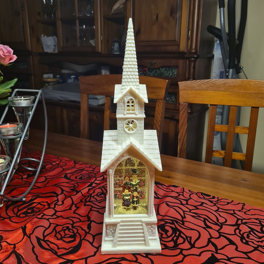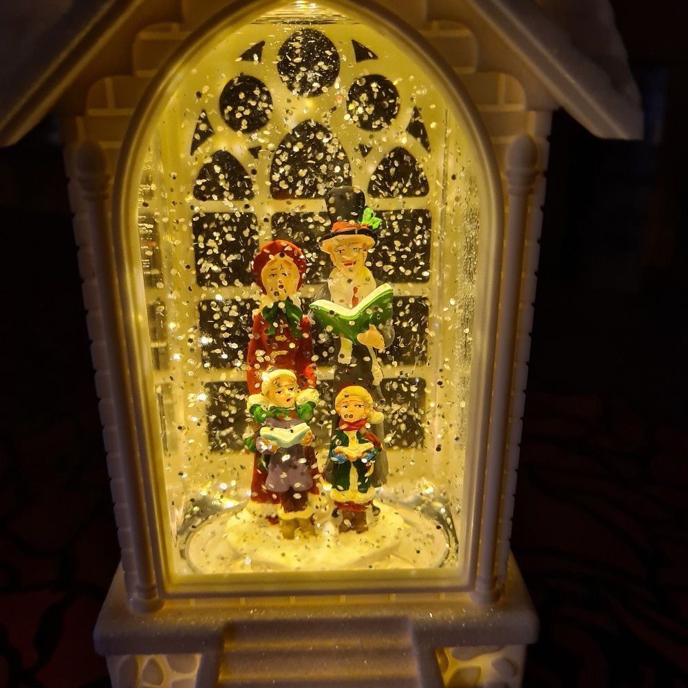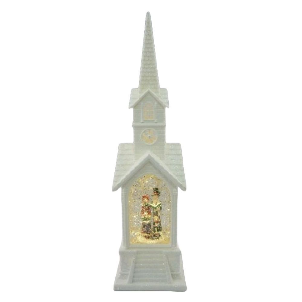 LED Kirche weiss wassergefüllt Weihnachtsdeko 39,5x10,5cm PT-22145