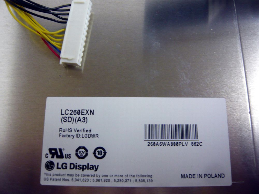 gebraucht, geprüft, voll funktionstüchtig geringste Gebrauchsspuren Display Panel von LG Typ LC260EXN(SD)(A3) 26 Zoll Oberfläche glänzend komplett mit Displayanschlußkabel Maße: 61x35,7cm 10mm stark
