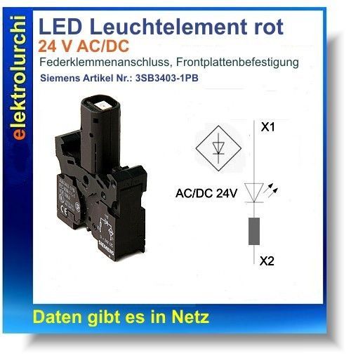 LED Leuchtelement 24V/ ac/ dc rot Frontbefestigung Siemens 3SB3403-1PB, 1St