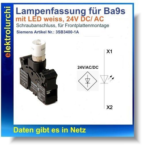 Siemens LED Leuchtelement 24V/ ac/ dc weiss Frontbefestigung Siemens 3SB3400-1A, 1St