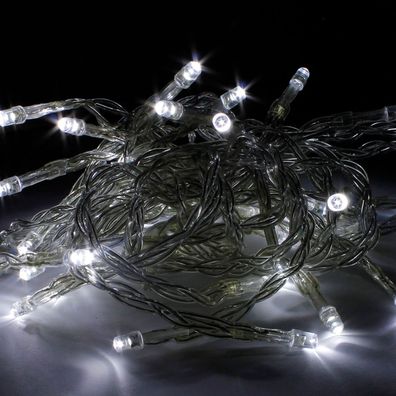 Lichterkette kaltweiß 50 LEDs transparent Batteriebetrieben Innen + Außen