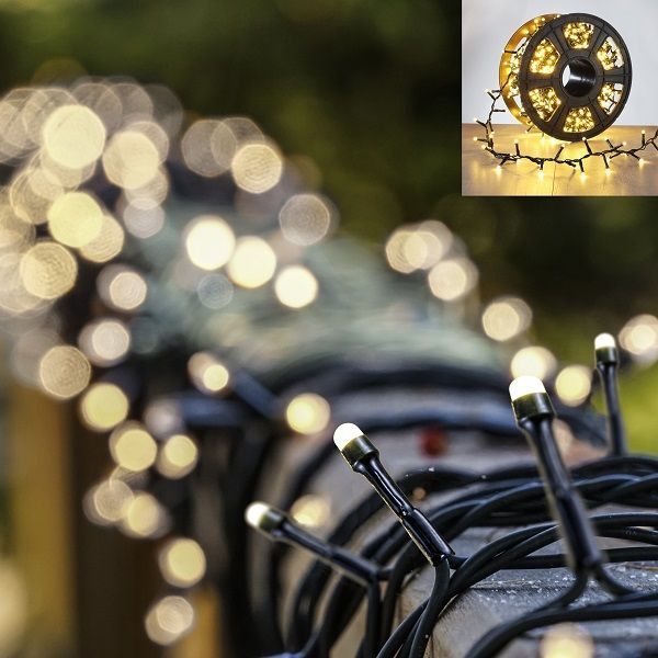 Haushalt International LED Lichterkette warmweiß 1000er 20m Kabel grün außen Kabelrolle HI 76634