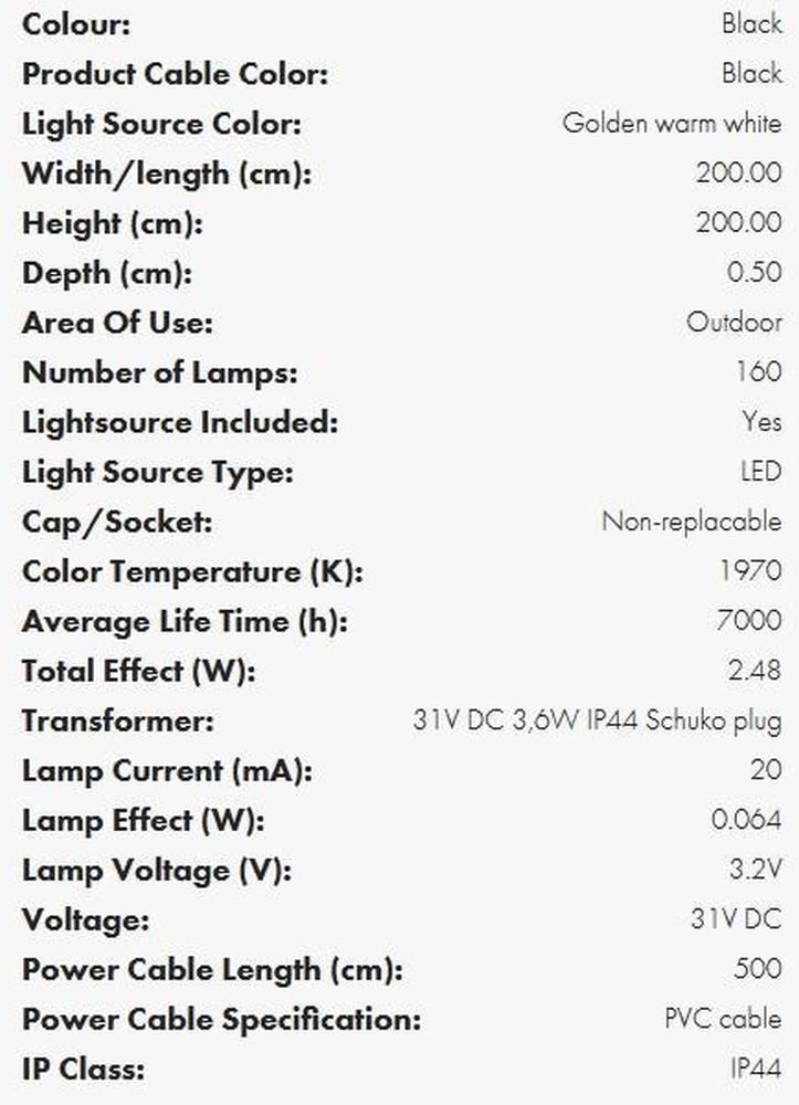 LED Lichternetz 160er golden warmweiß 2x2m Kabel schwarz außen 594-23-1