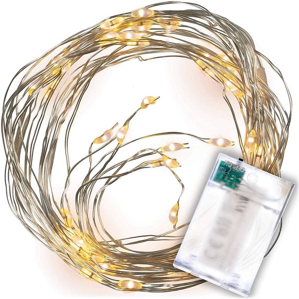 LED Lichterregen 64 er 8 silberne Drähte warmweiß Batteriebetrieb Timer BI11024