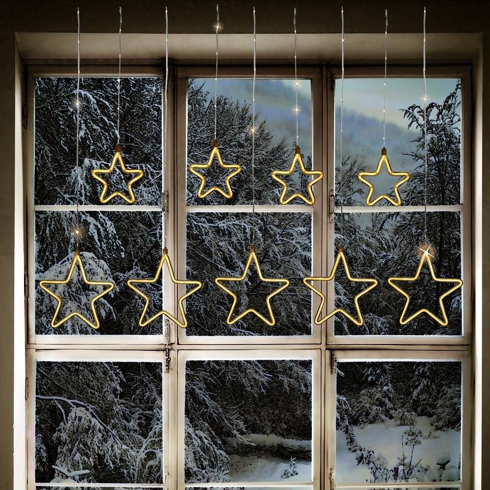 LED Lichtervorhang 4 Kleine 5 große Sterne 864er warmweiß IP44 FHS 35079